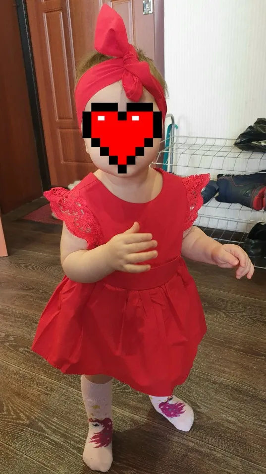 привет, товар хороший,только вот размерчик можно больше брать,дочке 11м,рост 76 см,платье как раз,повязка идет просто лента, завязывать самим нужно