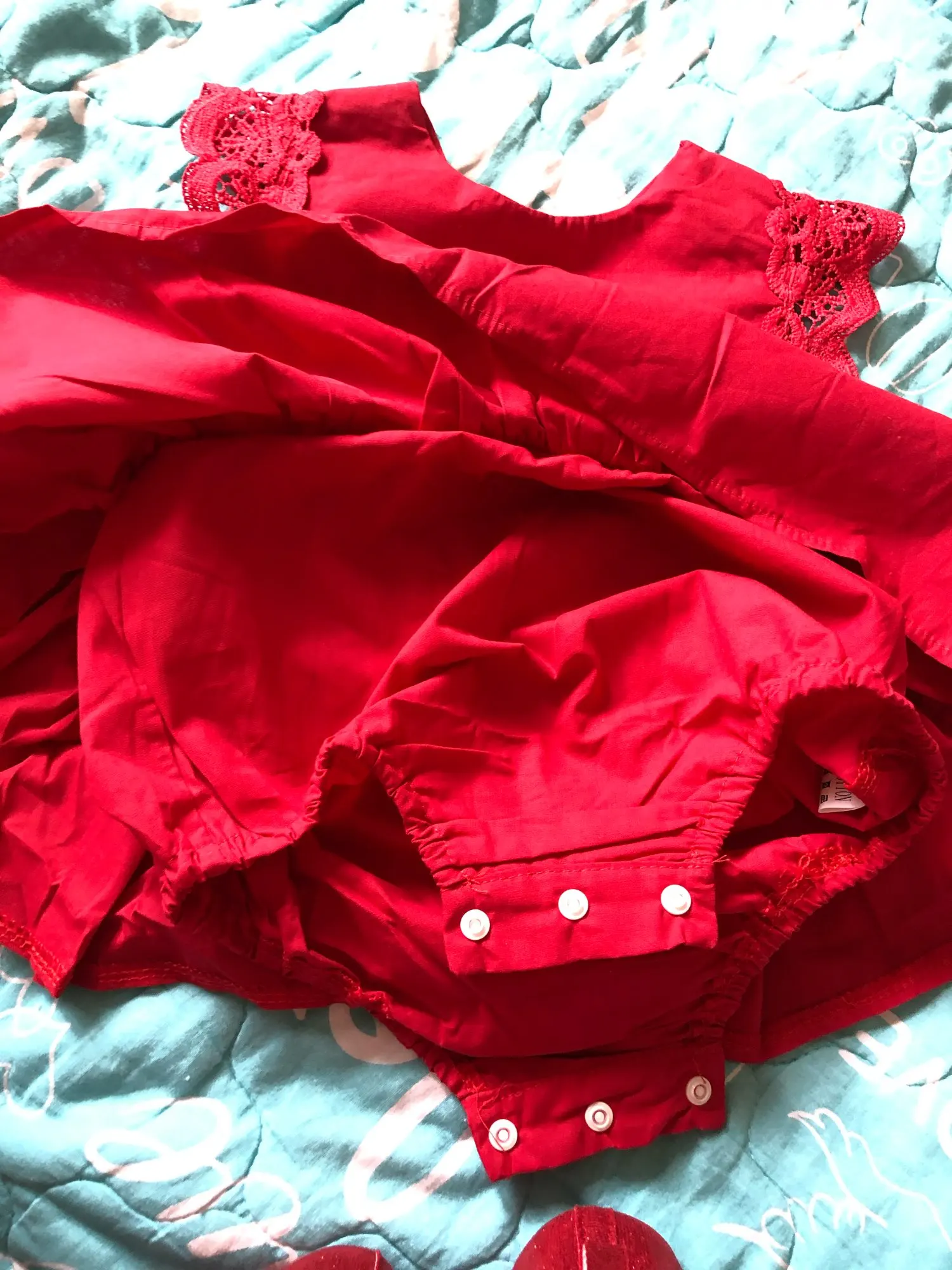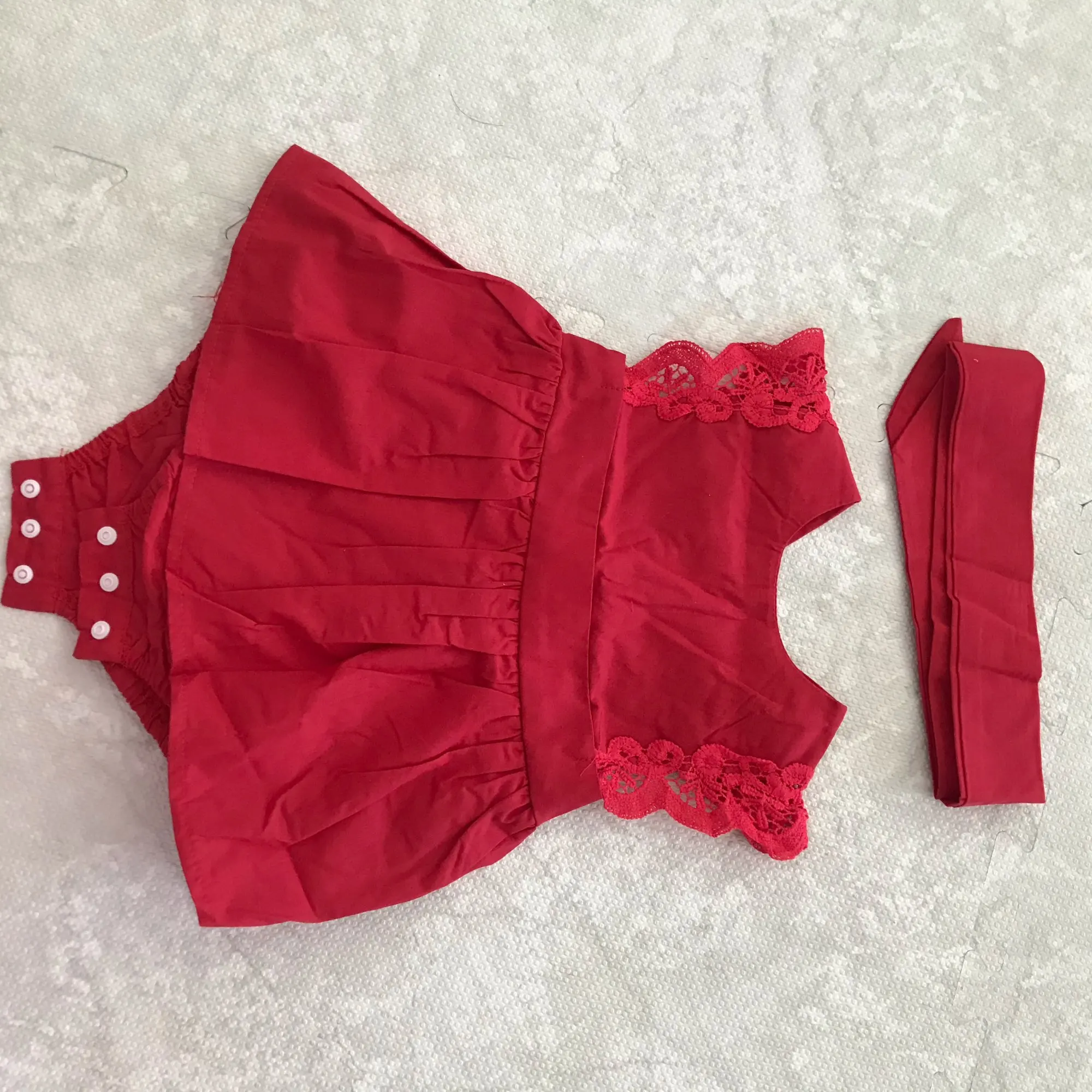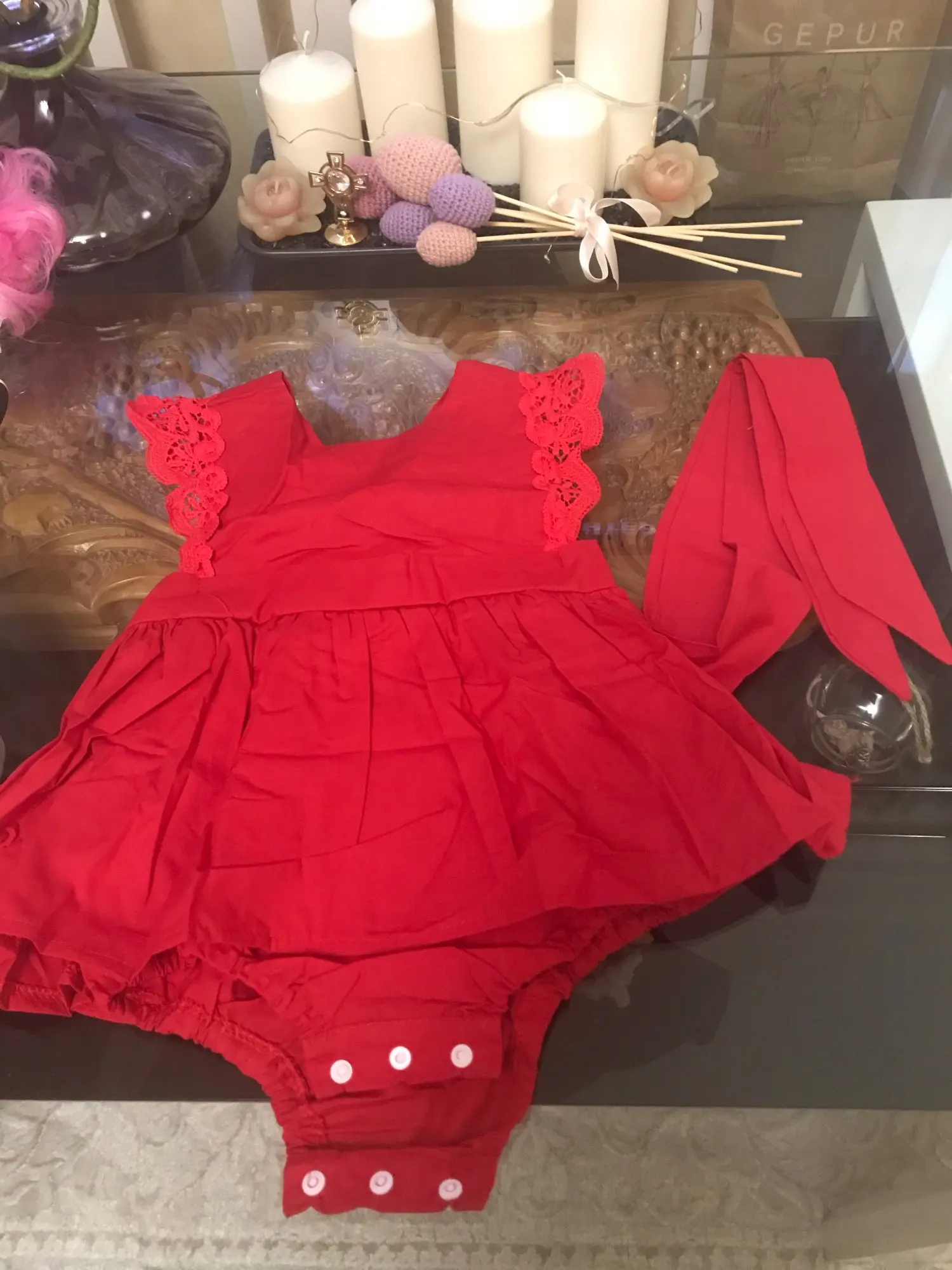 Комбинезон детский, хлопковый, Красный Вечерние оборками