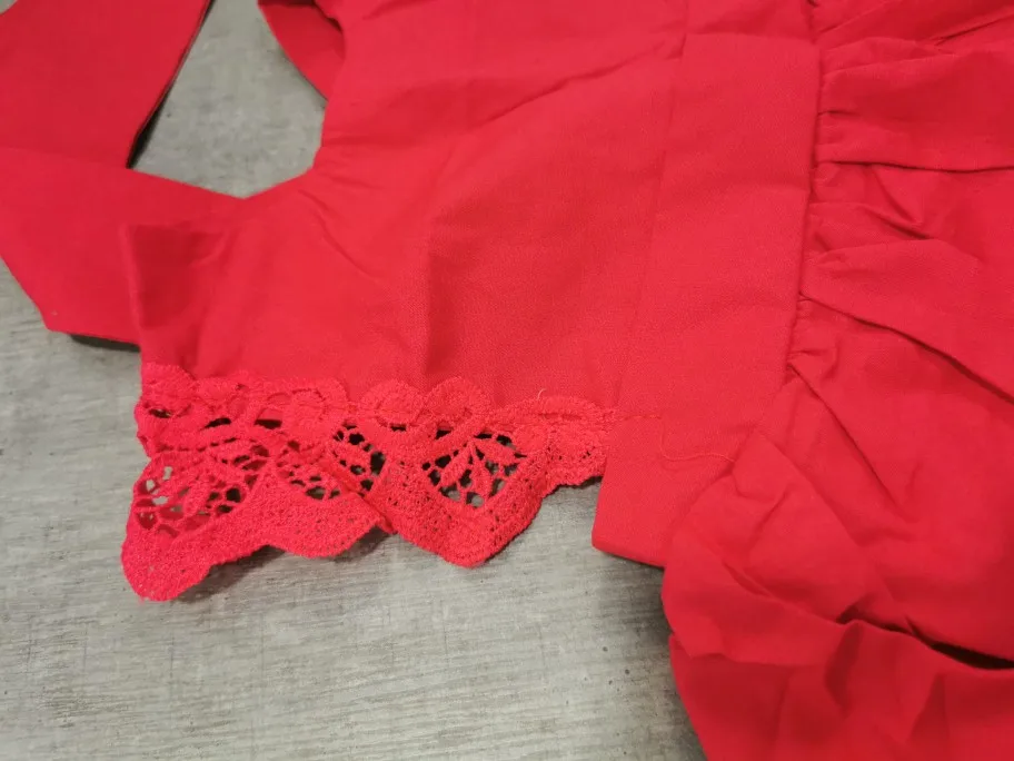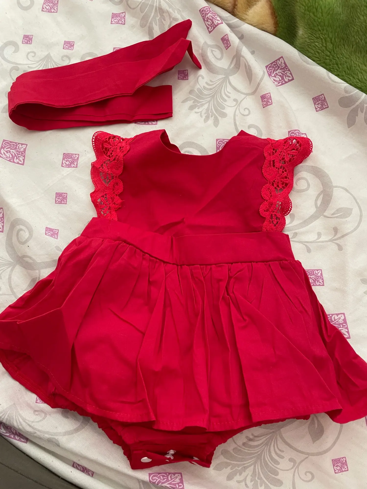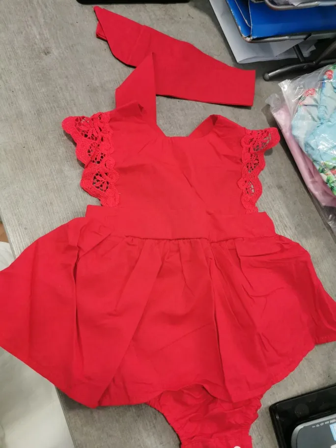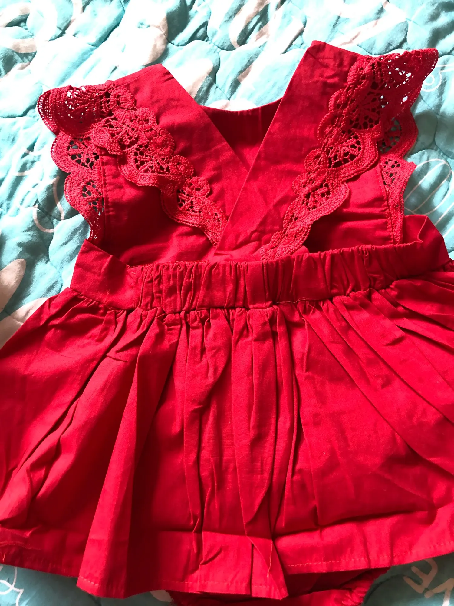 Комбинезон детский, хлопковый, Красный Вечерние оборками