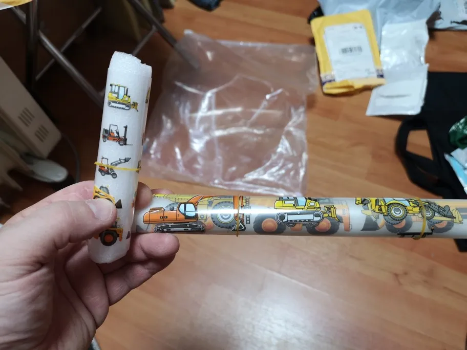 пришло свёрнутым в трубочку, выглядит качественно, в деле ещё не пробовали