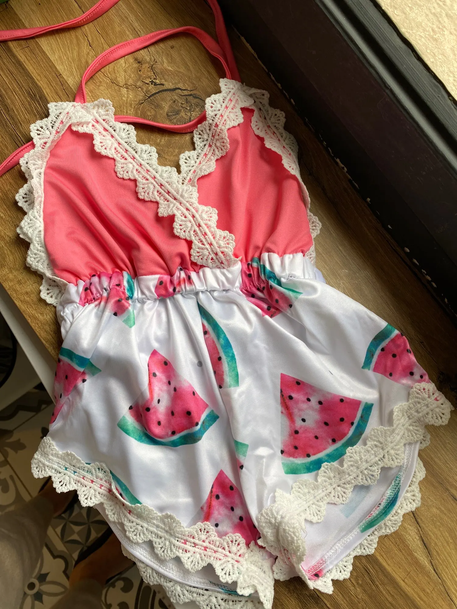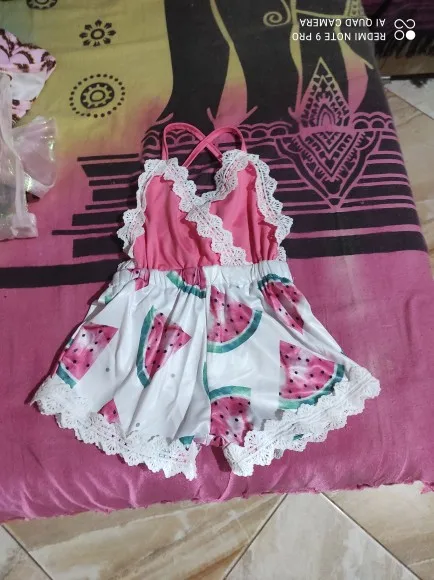 Комбинезон детский летний, кружевной, с открытой спиной, Арбузные, 2018