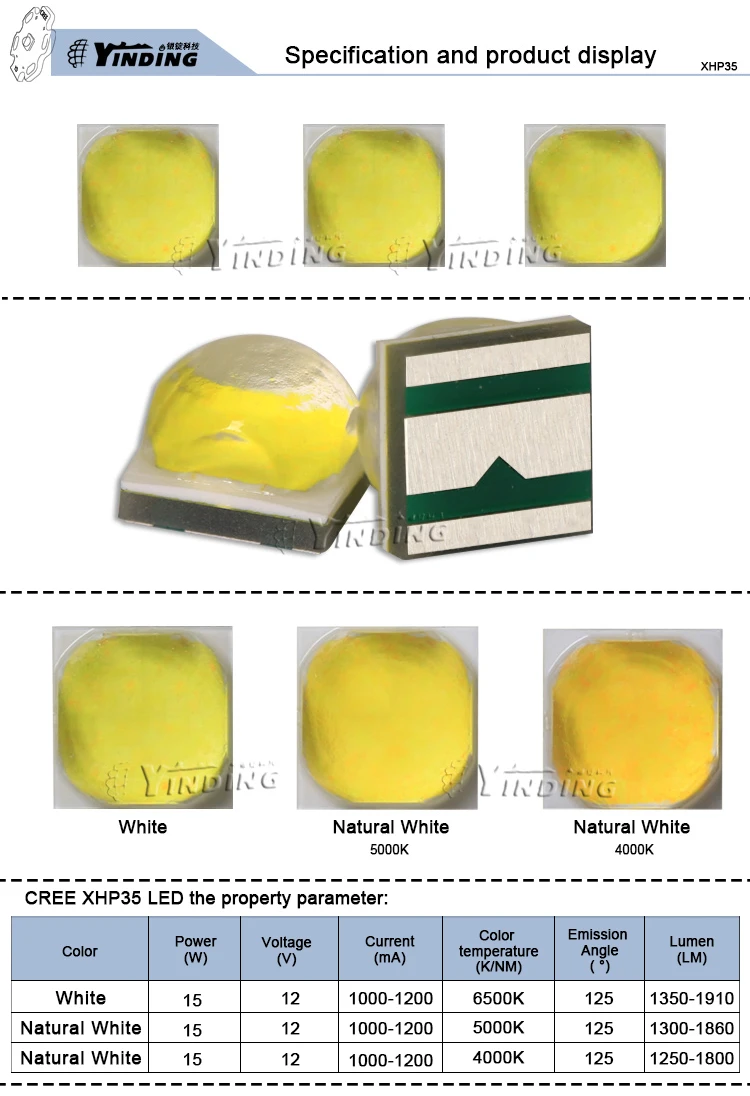 Cree XLamp XHP35, 5 шт., 15 Вт, светодиодный светильник, источник 3535, мощные светодиодные лампы 4000-6500K, натуральныйбелый автомобильный головной светильник, фитиль