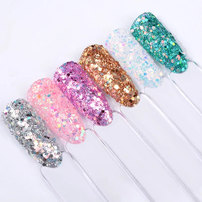6 коробок/набор лазерных разноцветных блестящих пудр для ногтей блестящих красочных хлопьев для ногтей 3d DIY Очаровательная Пыль для украшения ногтей