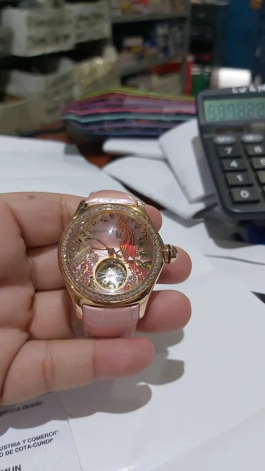 Часы женские водонепроницаемые с розовым циферблатом и автоматическим турбийоном