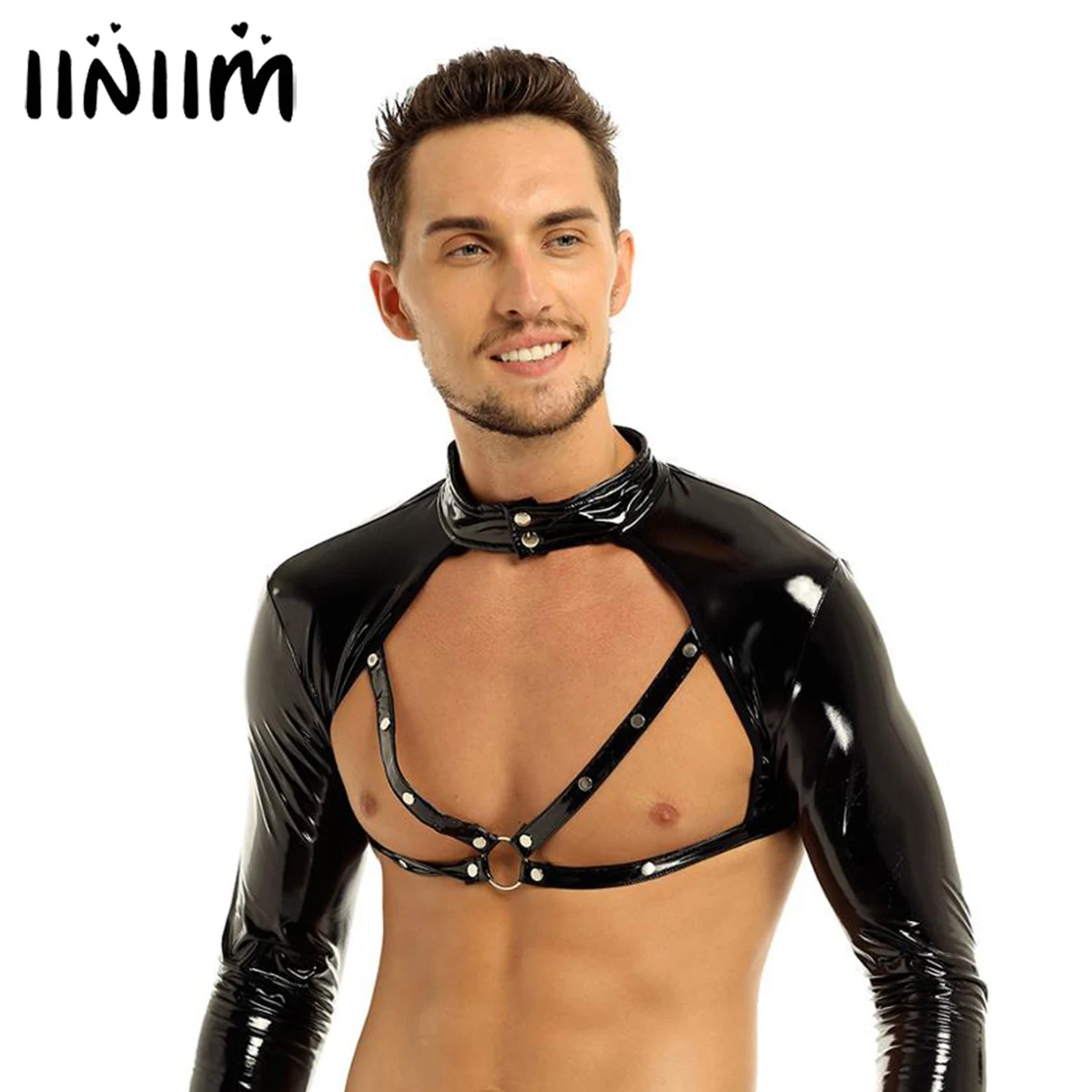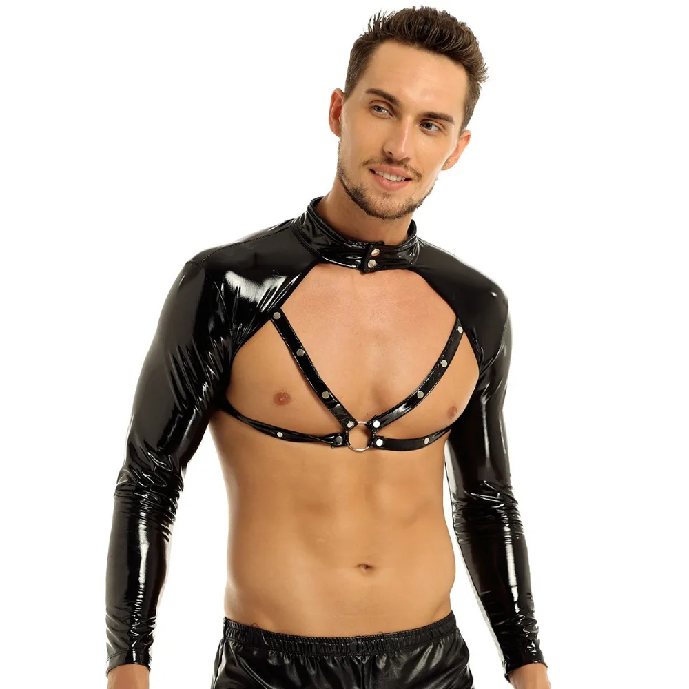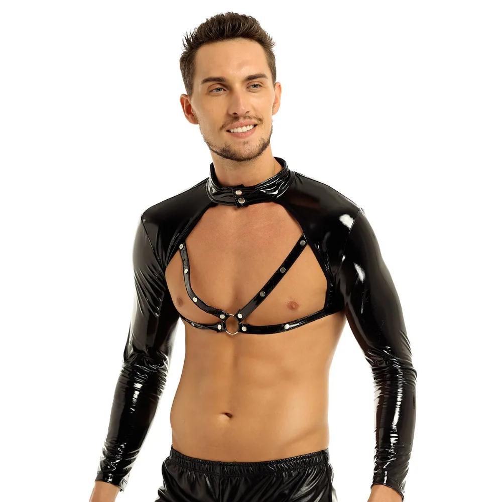 Особенности:Мужской короткий топ из искусственной кожи, хорошо тянущаяся ткань.Длинный рукав, воротник-стойка с застежкой на кнопках, 4 ремешка с металлическими уплотненными кольцами спереди.Гладкое и мягкое ощущение, удобно носить, очень круто и соблазнительно.Идеально подходит для ночного клуба, костюмов, выступлений на сцене, ночного белья или самостоятельного удовольствия.Пожалуйста, проверьте размер, чтобы убедиться, что ваш размер перед заказом, рекомендуется ручная стирка.