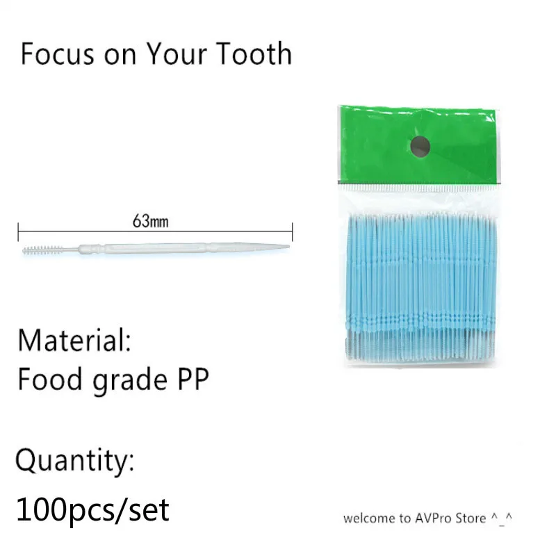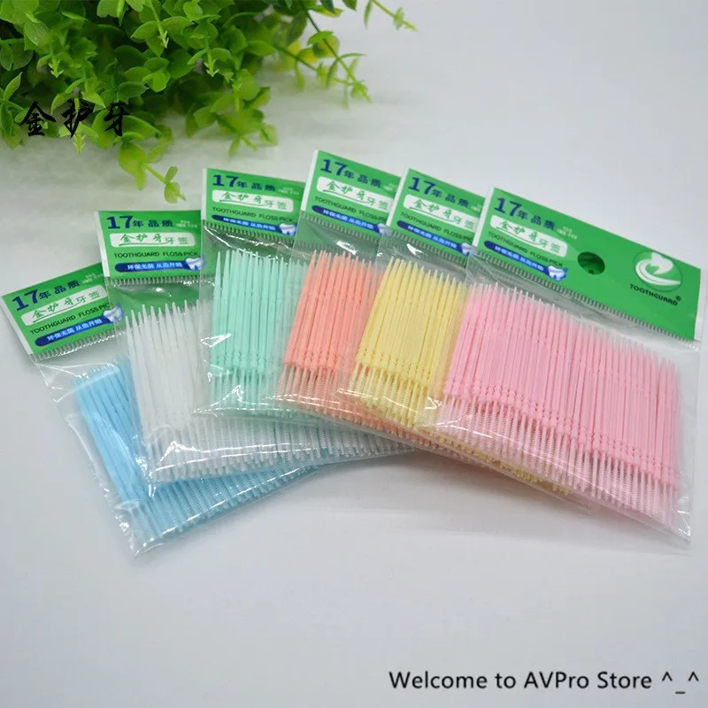 100 шт.коркор. зубная нить с двойной головкой, межзубный зубочистка, щетка, палочка для зубов, уход за полостью рта, зубная нить, палочка