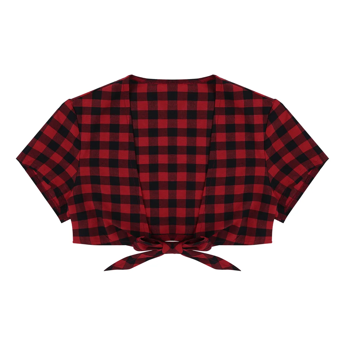 YiZYiF сексуальный женский дымчатый топ с глубоким V-образным вырезом, открытая спереди, в клетку, с завязками, болеро, короткий топ, болеро, рубашка