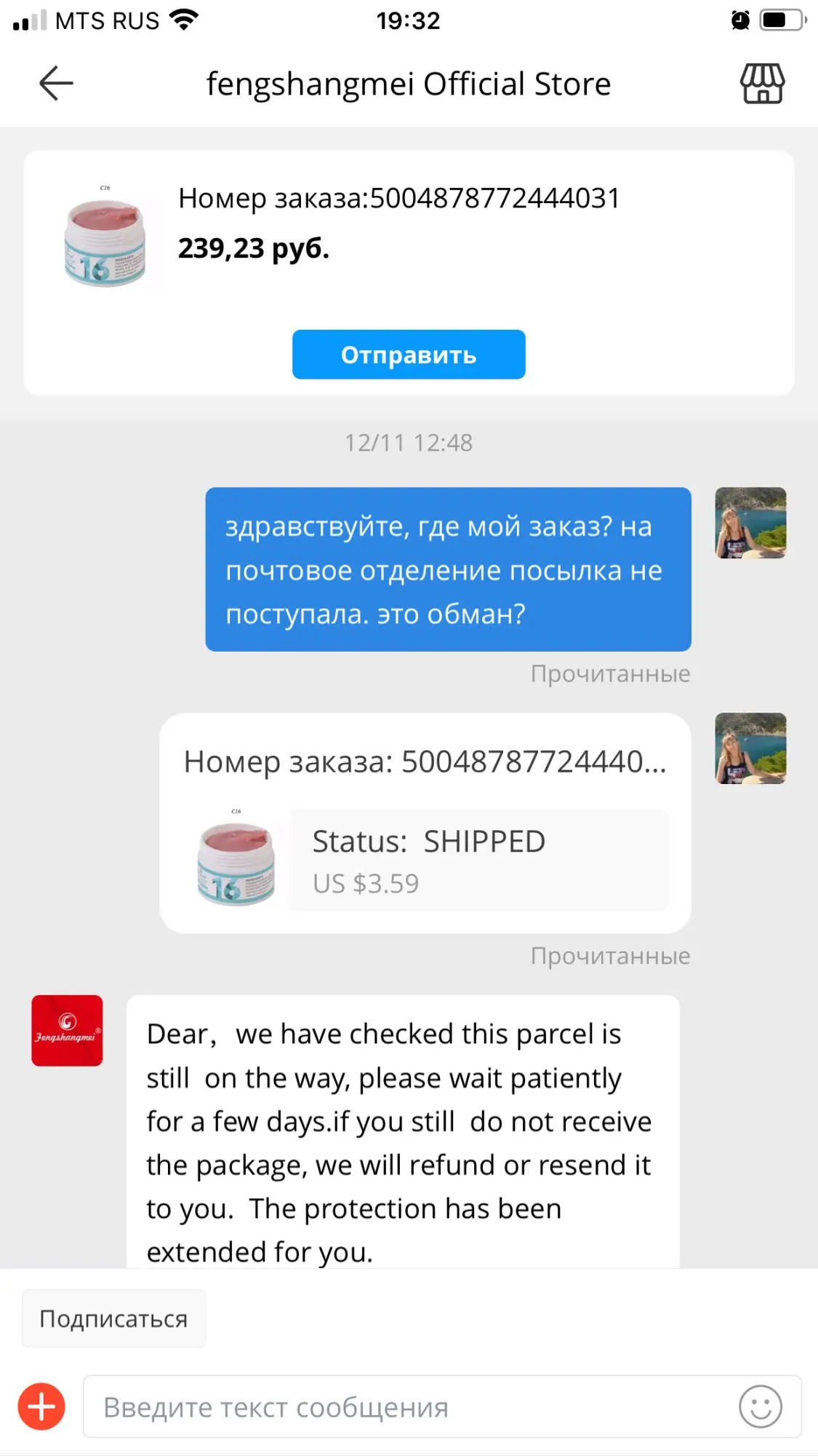 Прошло почти три месяца. Заказ так и не был получен. Продавец вешал лапшу на протяжении времени ,с ним общения. Не советую связываться с этим магазином.
