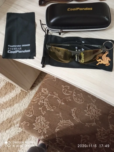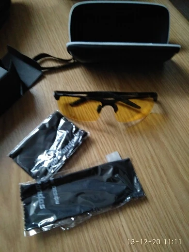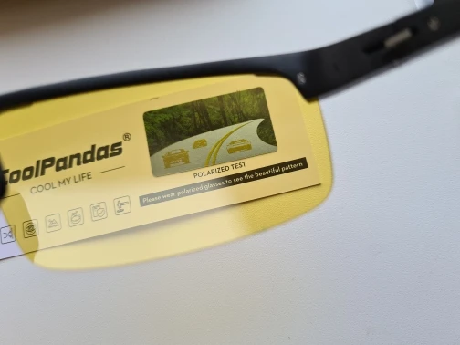 Заказывал 24.10.20, пришёл 12.11.20г в Пермский край. Упаковка отличная, много коробочек и салафановых мешков. Качество сборки отличное, стильные, лёгкие. Оправа не мешает боковому зрению. Держатся на голове хорошо, дужки прорезинены. Для меня немного большеваты дужки. Поляризация есть, тест прошли. Светил ультрофиолетовым фонариком, на стёклах остались темные кружки на 4 фото. На солнце, даже зимой, темнеют до тёмно-коричневого цвета. Фотохромность хорошая. При езде на машине в сумерках, высветляют тёмные участки. Встречные автомобили слепят, но ощущения намного легче. Глаза в них не устают. Вообще в пасмурную погоду с желтыми стеклами намного веселее, кажется солнца больше. В подарок положили брелок для ключей, салфетку для стёкол, также тест на поляризацию и мягкий и жесткий чехол для очков. Мне подошли на отлично, решайте сами, деньги свои оправдывают. Продавцу респект.
