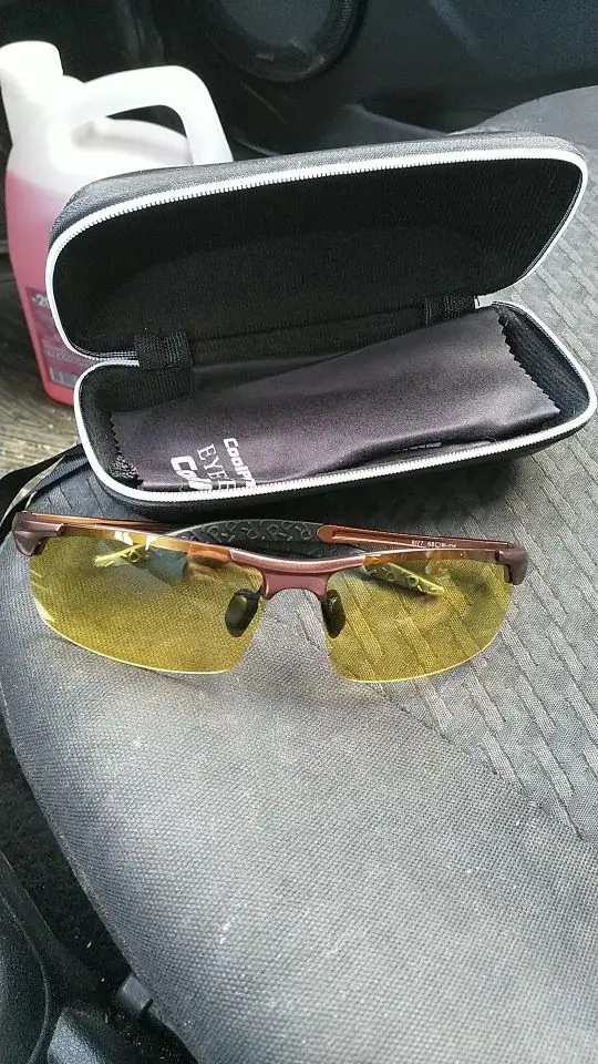 Впечатление очень качественной вещи (хотя футляр выглядит дешевенько). Сами очки реально классные. Такое ощущение, что подстраивается не только затемнение, но и жёлтый цвет - через несколько секунд после надевания интенсивность жёлтого сглаживается. Глаза при вождении намного меньше устают, даже ночью в снегопад. Пришли в пикпойнт недели за полторы от заказа.