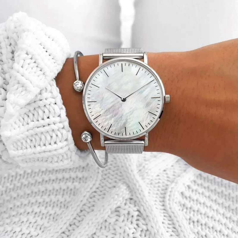 Женские сетчатые кварцевые часы SANSHOOR, браслет из нержавеющей стали с белым корпусом, осенние подарки