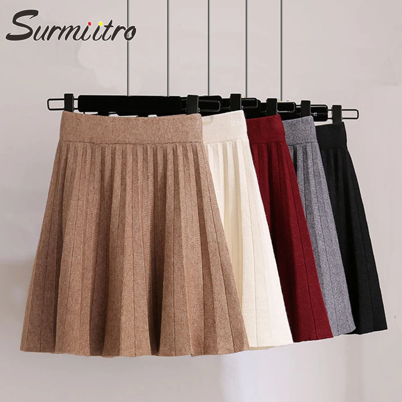 Женская трикотажная Мини-юбка Surmiitro, повседневная трапециевидная юбка с высокой эластичной талией в Корейском стиле, Осень-зима 2021