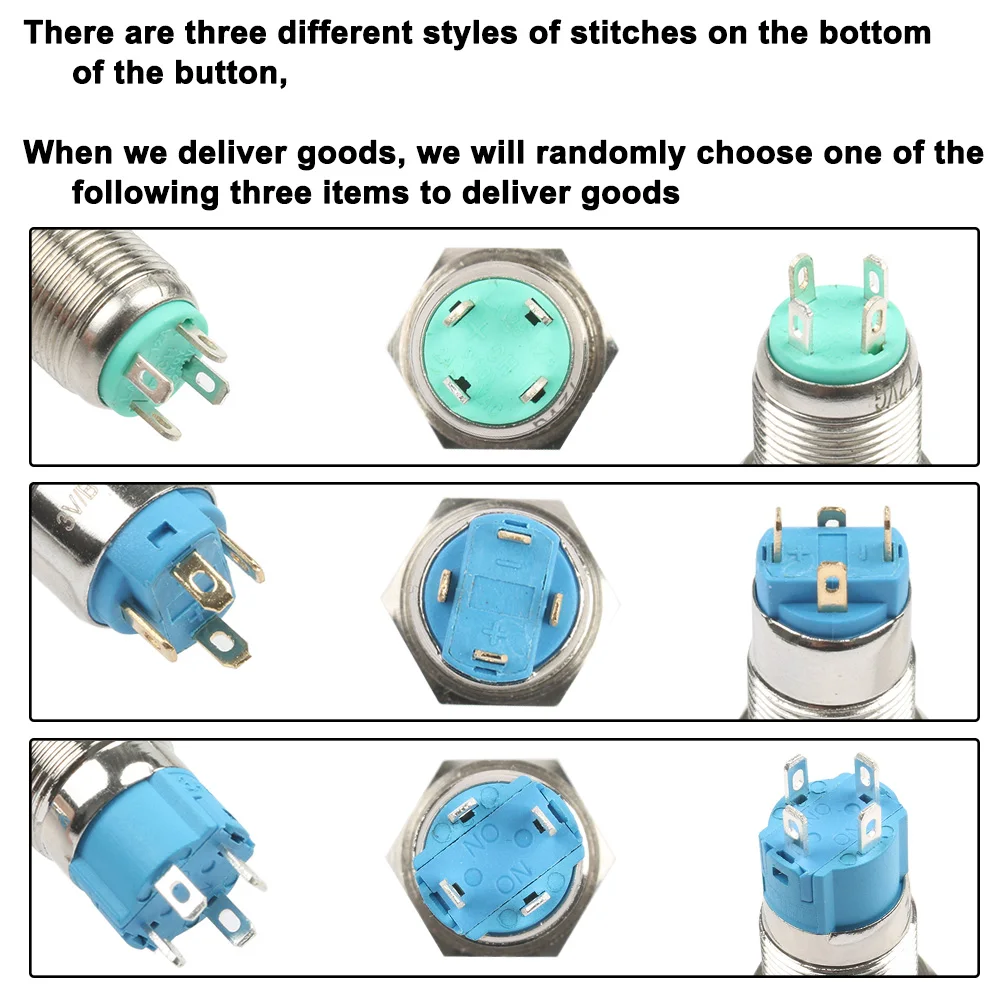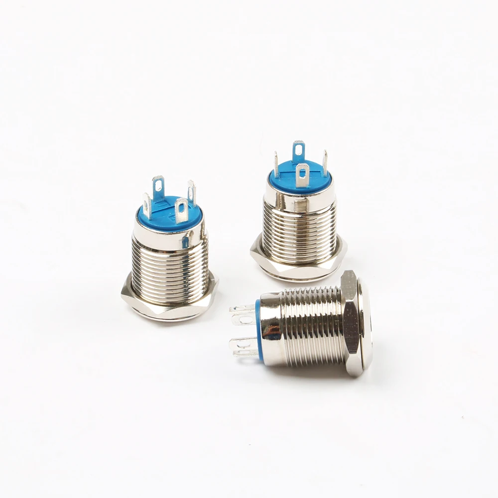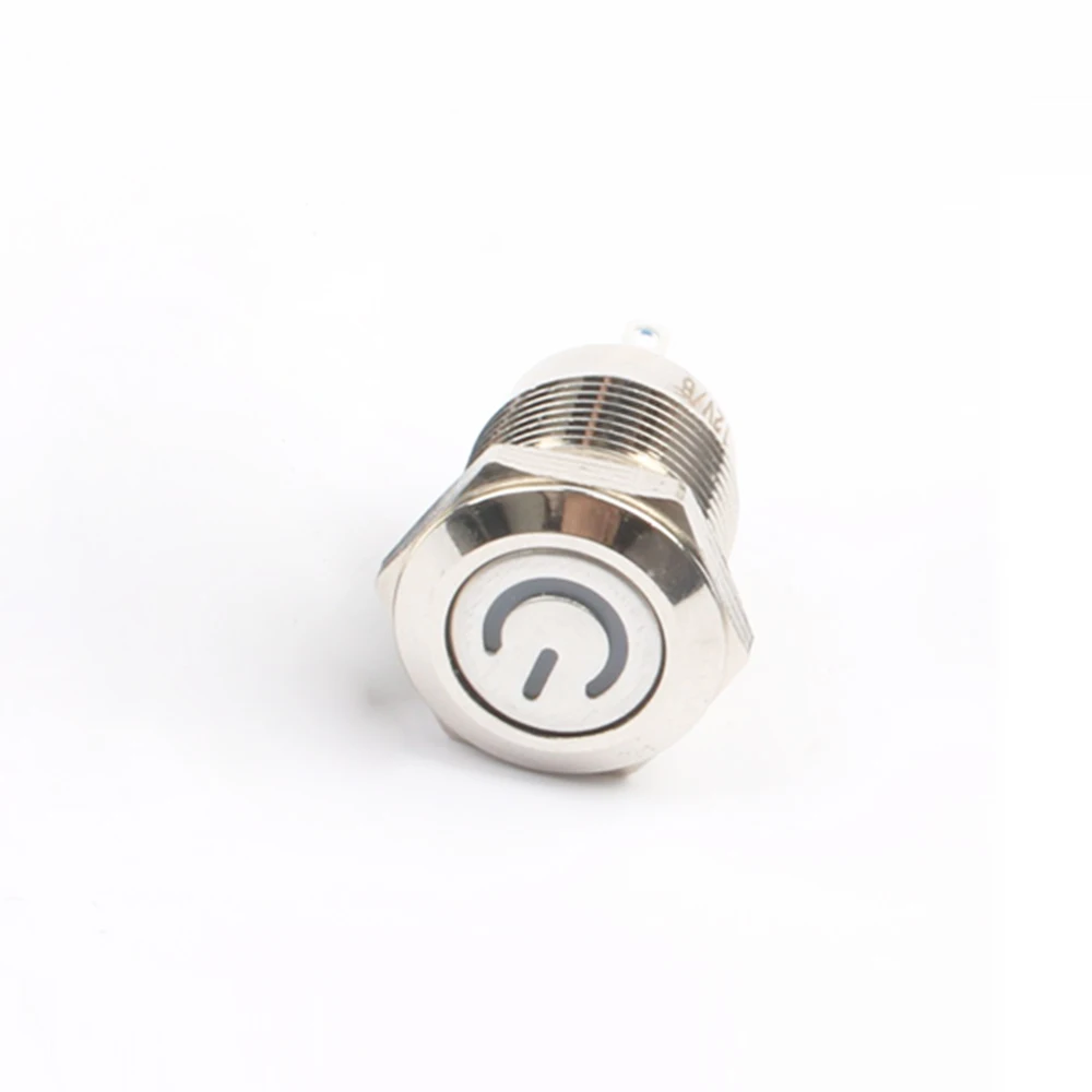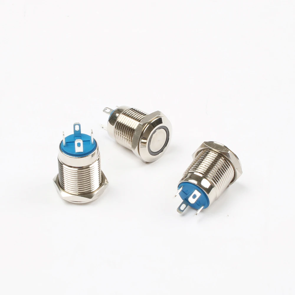 Светодиодный ные металлические латунные кнопочные переключатели 12 мм, 1NO, мгновенные, красные, желтые, синие, белые, зеленые светодиодный светодиодные кольца 220 В, 12 В, 24 В, выключатели с фиксацией