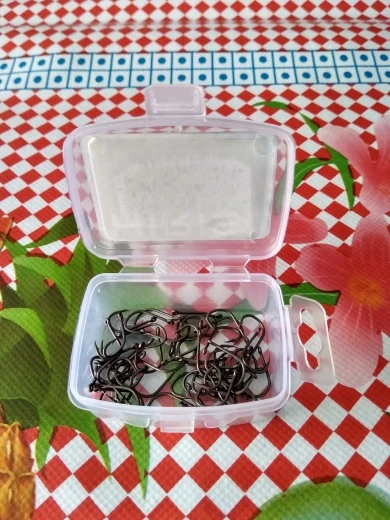 Продавец кладёт по 53крючка это плюс . А вот минус в том что размерная сетка сдвинута в меньшую сторону. То есть N.4 в этом магазине это N.6 в декатлоне. Придётся заказывать снова и снова ожидать . На первом фото сравнение 4 здешней и магазинной . На второй по краям 4 и 6 магазинные а в центре 4 с али.