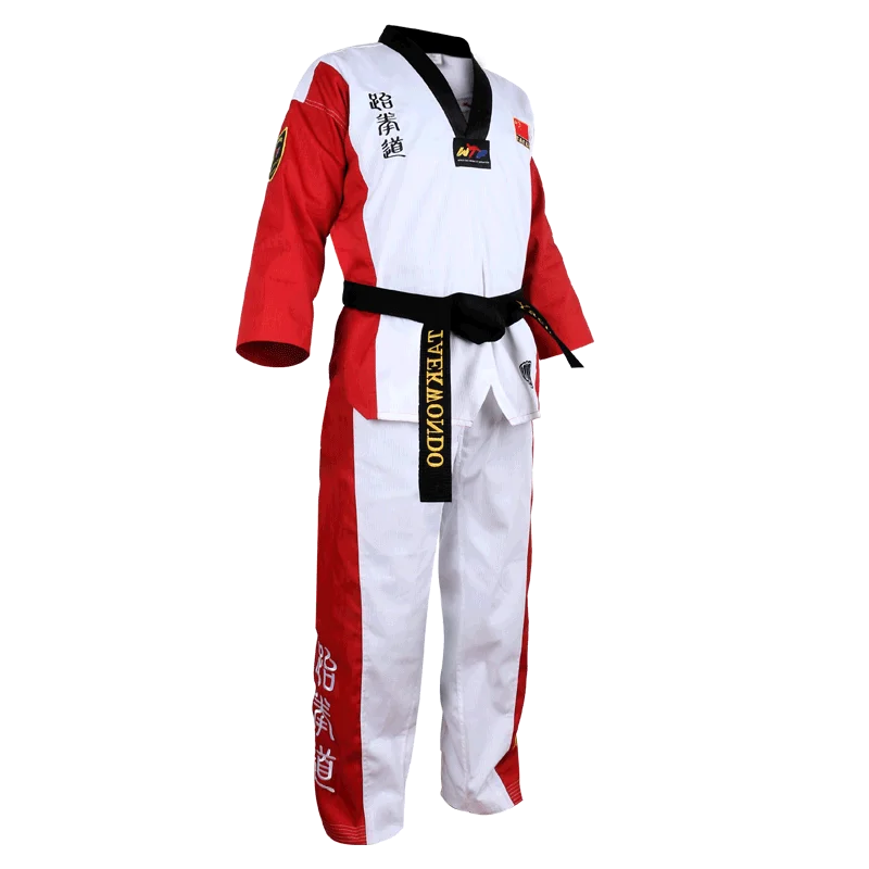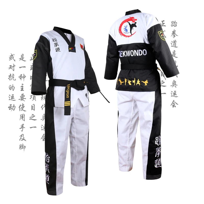 Высокое качество, цветная форма для тхэквондо, для детей, для взрослых, WTF, tae, kwon do, добок, каратэ, для женщин и мужчин, хороший хлопковый костюм для тхэквондо, черный с v-образным вырезом