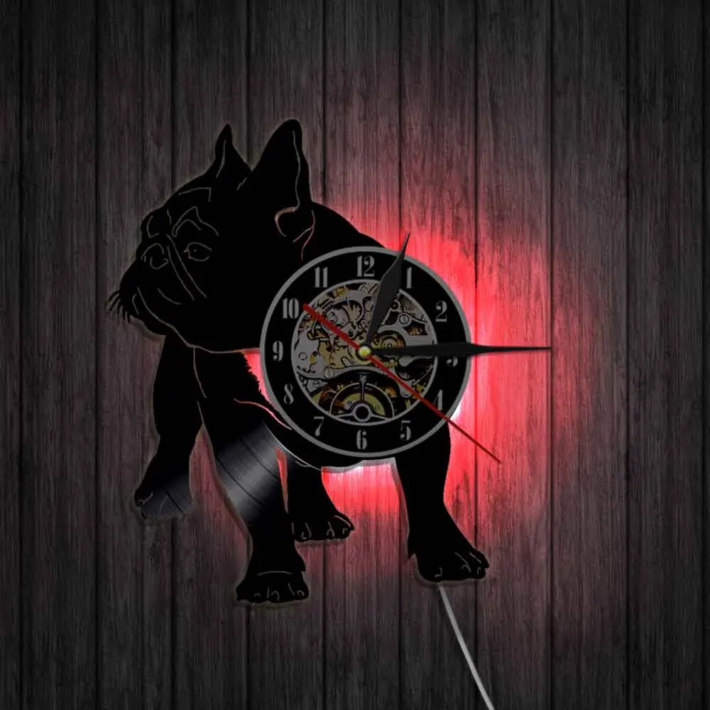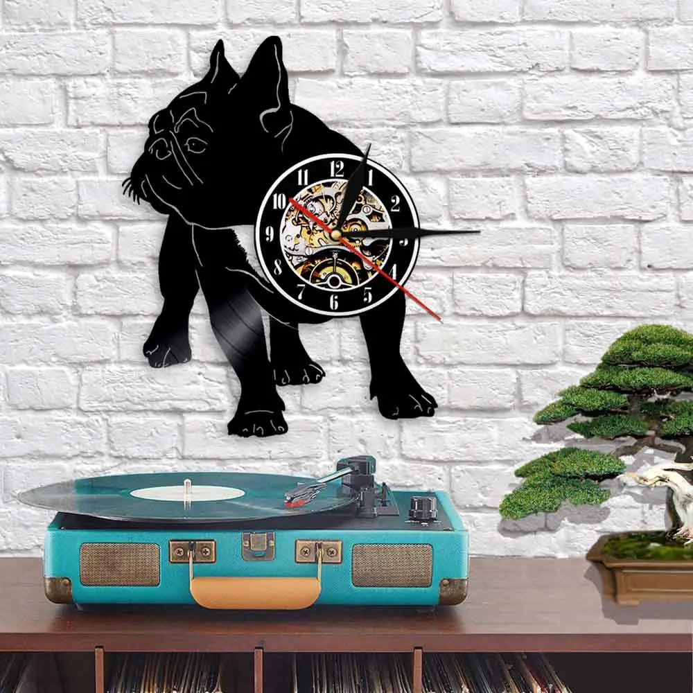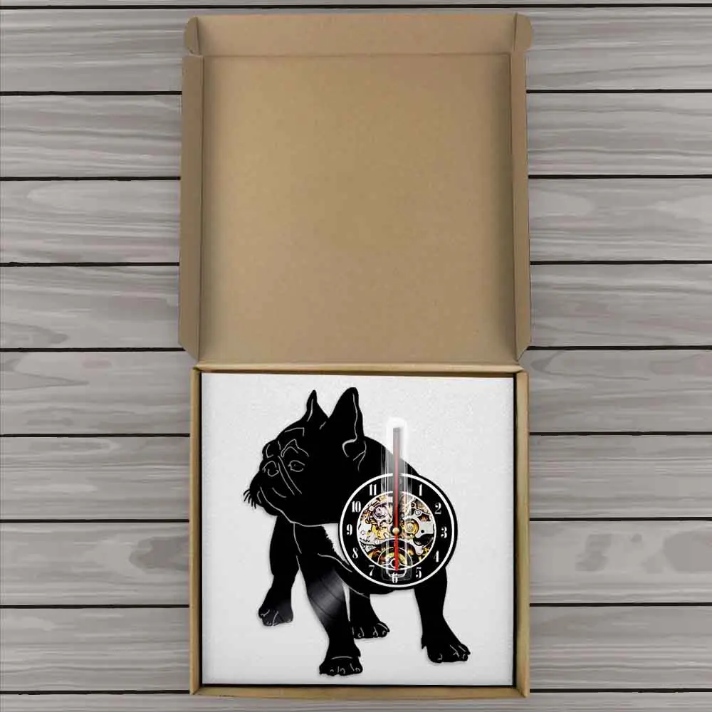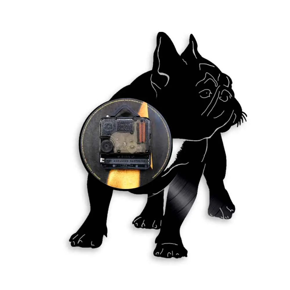 Часы настенные с виниловой пластинкой в виде французского бульдога