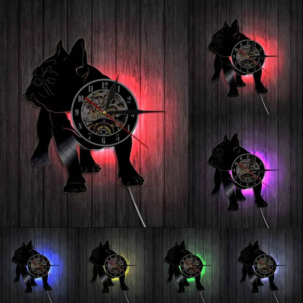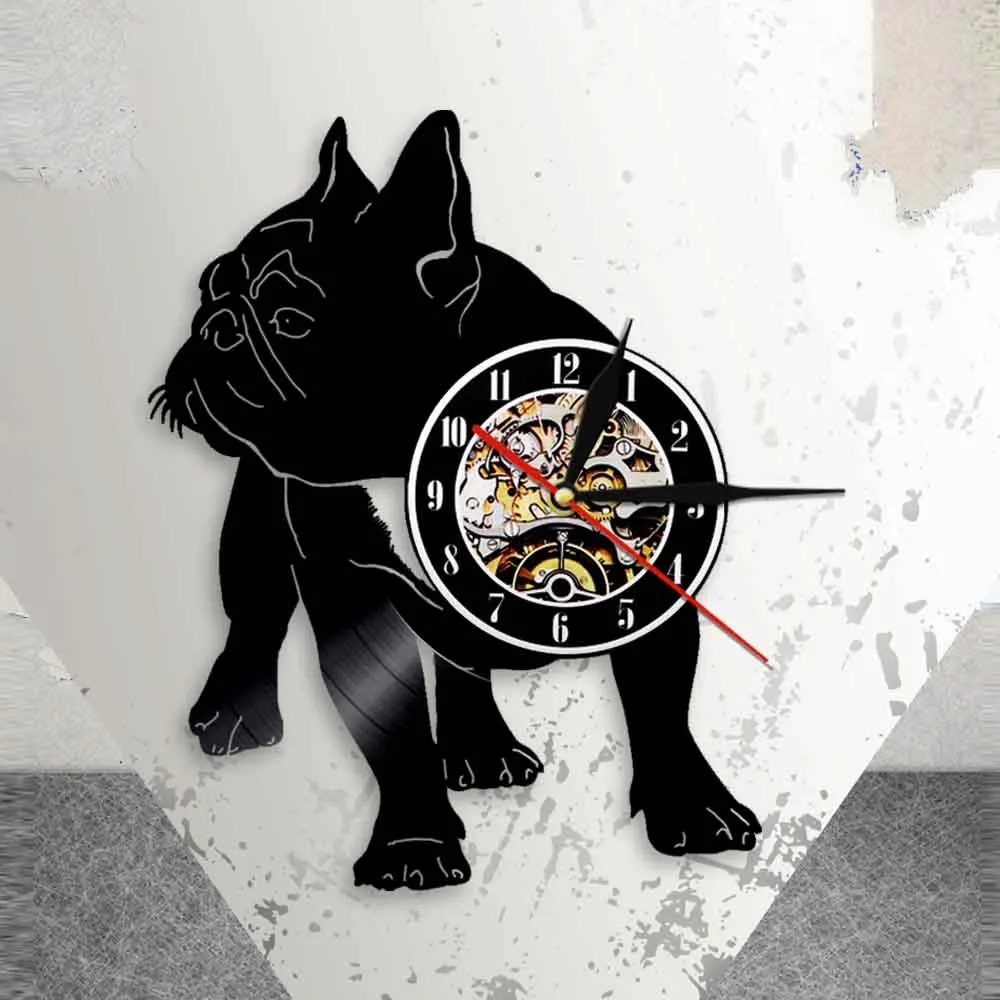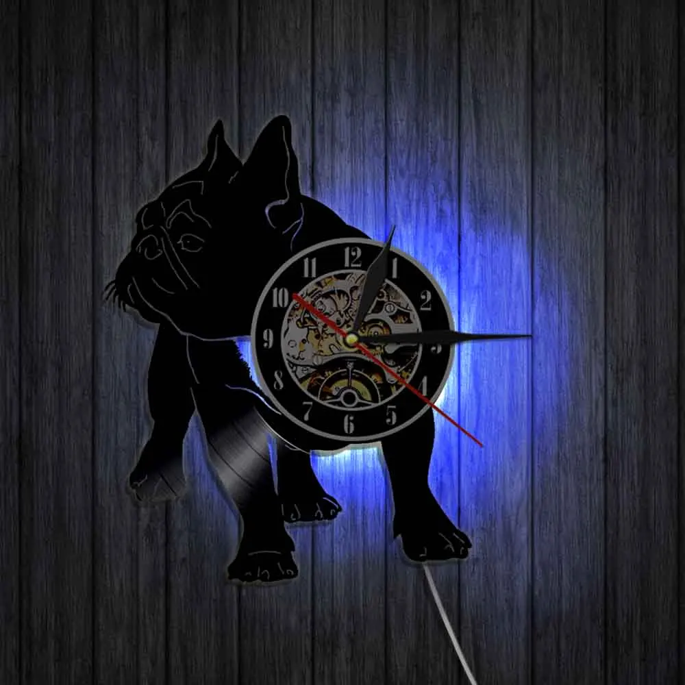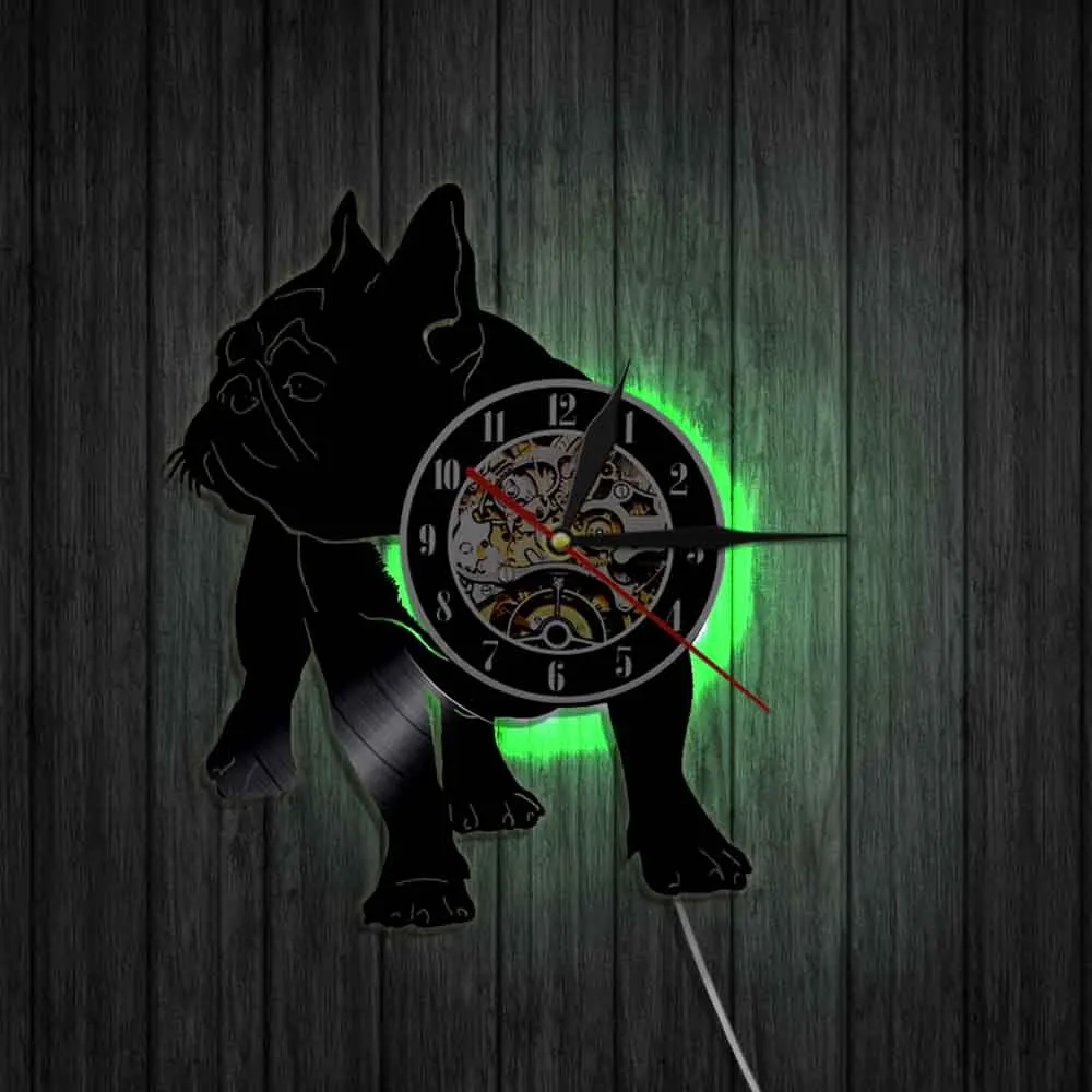 Часы настенные с виниловой пластинкой в виде французского бульдога
