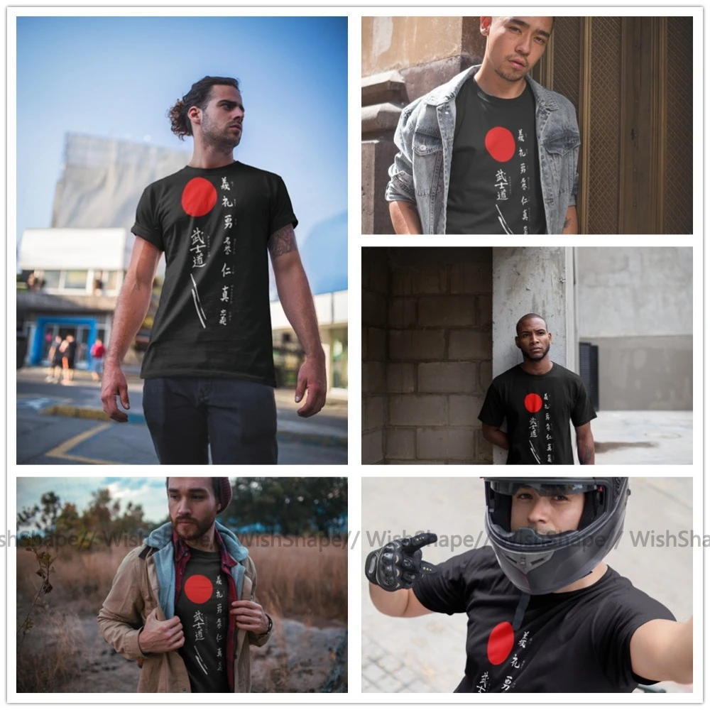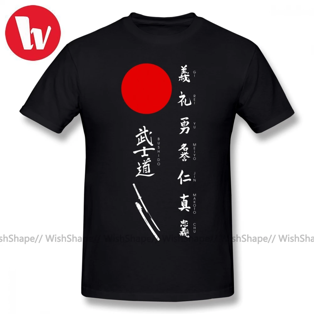 Мужская футболка с принтом Bushido и Японское солнце (белый текст) повседневные мужские футболки с графикой мужские футболки размера плюс 5XL