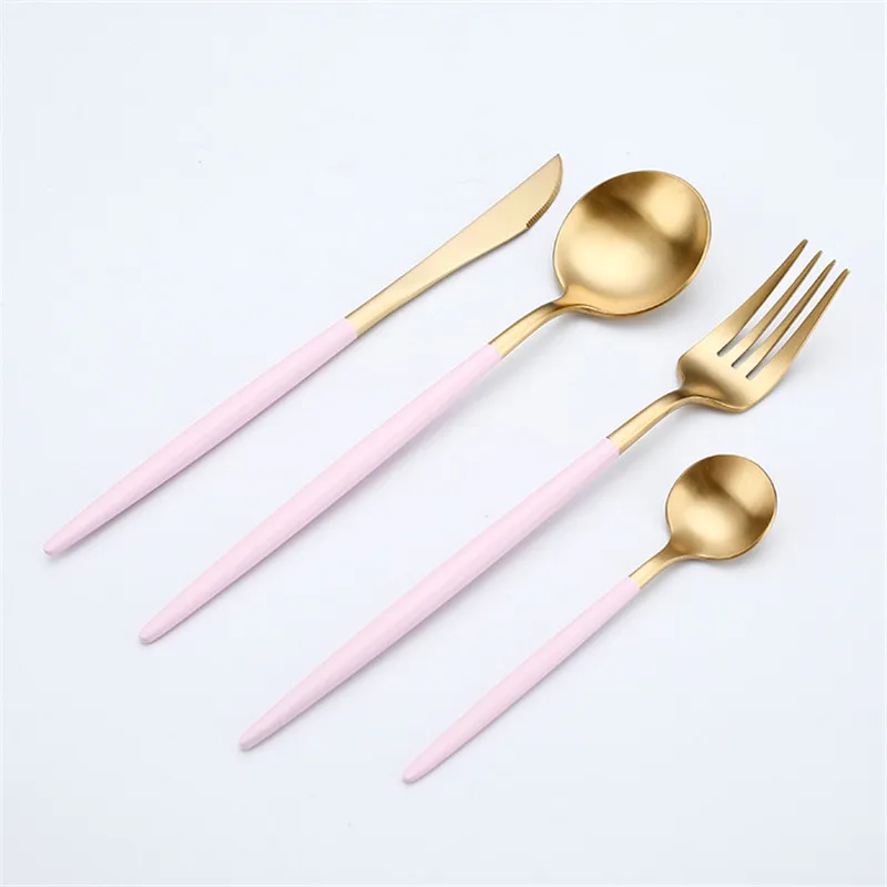 Набор столовых приборов из нержавеющей стали под розовое золото, вилка, чайная ложка, ложка столовый набор из вилок