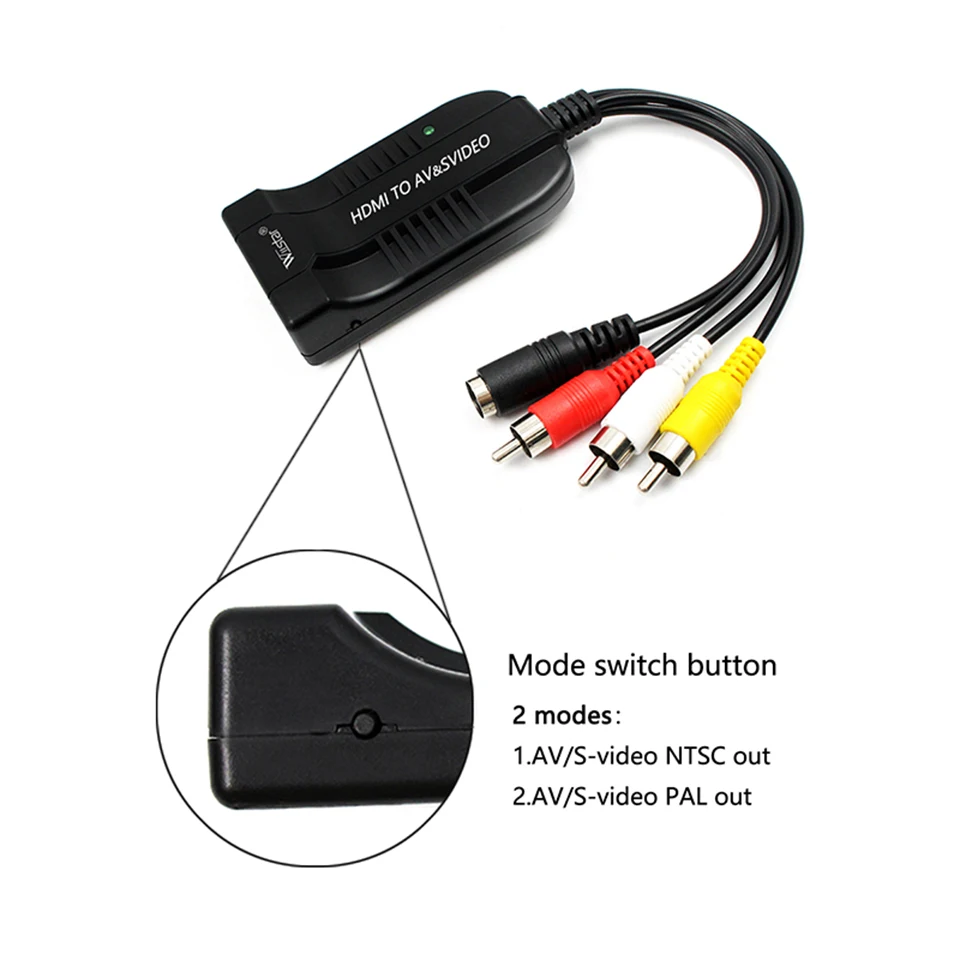 Этот товар HDMIМужскойAV RCA S видео конвертерЭта вещь не совместима с XBOX360.Этот продукт не поддерживает одновременный выход композитного видео. Пожалуйста, выберите один из них с помощью кнопки включения устройства.