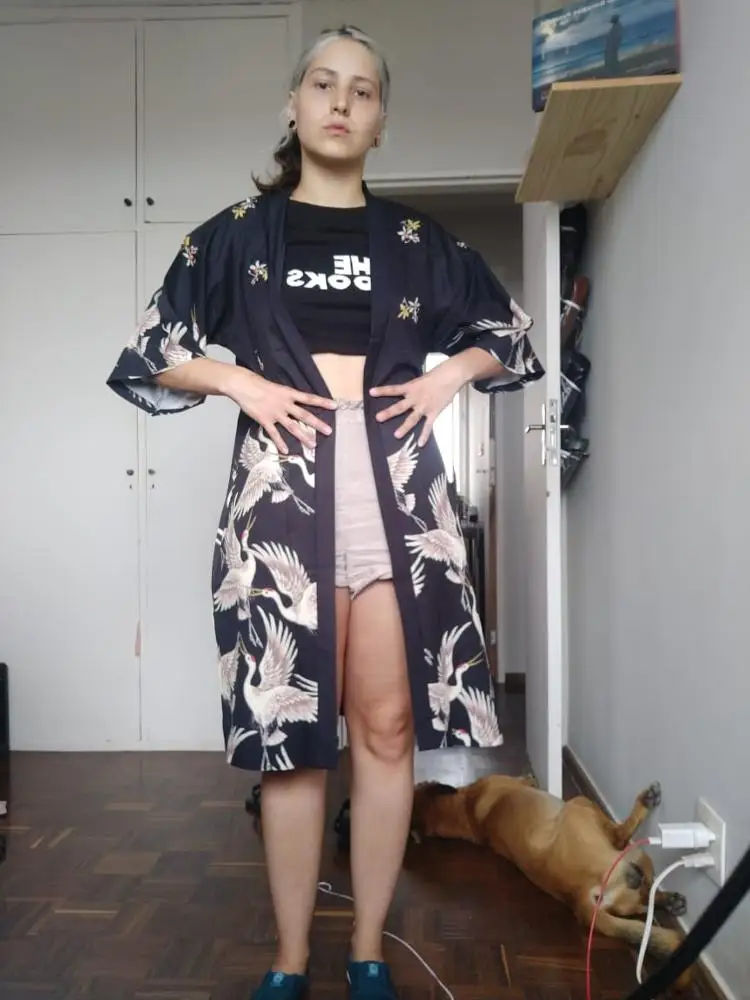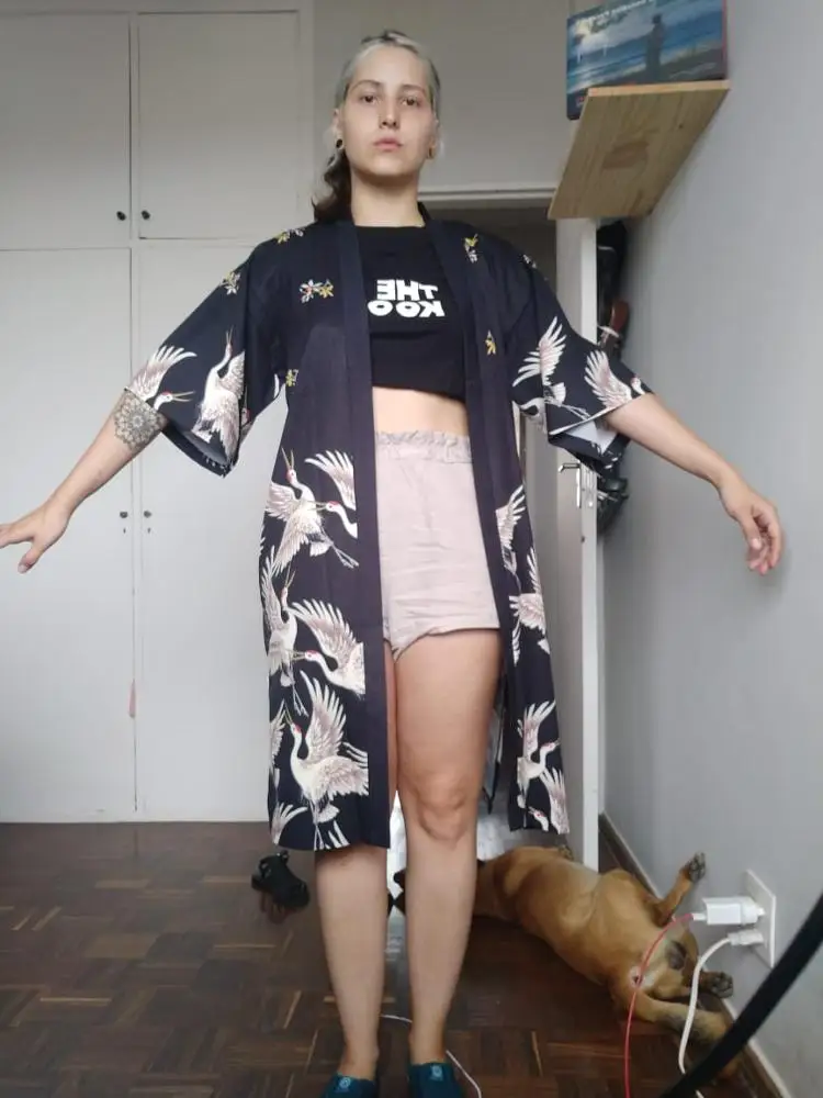Соответствует описанию. Я рекомендую его и чувствую себя очень доволен продуктом. Ткань немного растягивается, и узор красивый. Я рост 167 см и думаю, что он выглядит очень мило. Хотя я не очень хорошо фотографирую. Надеюсь, этот отзыв поможет!