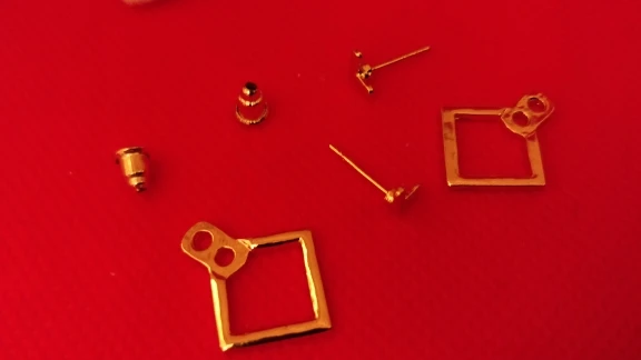 Доставка заняла ровно месяц. Упаковка хорошая: каждая серёжка в отдельном пакетике, и всё это в коробочках. Заказала 4 пары, положили пятую в подарок, только я пока не разобралась, как собрать этот конструктор Заказом очень довольна, всё примерила – идеально! Позже добавлю фото в действии