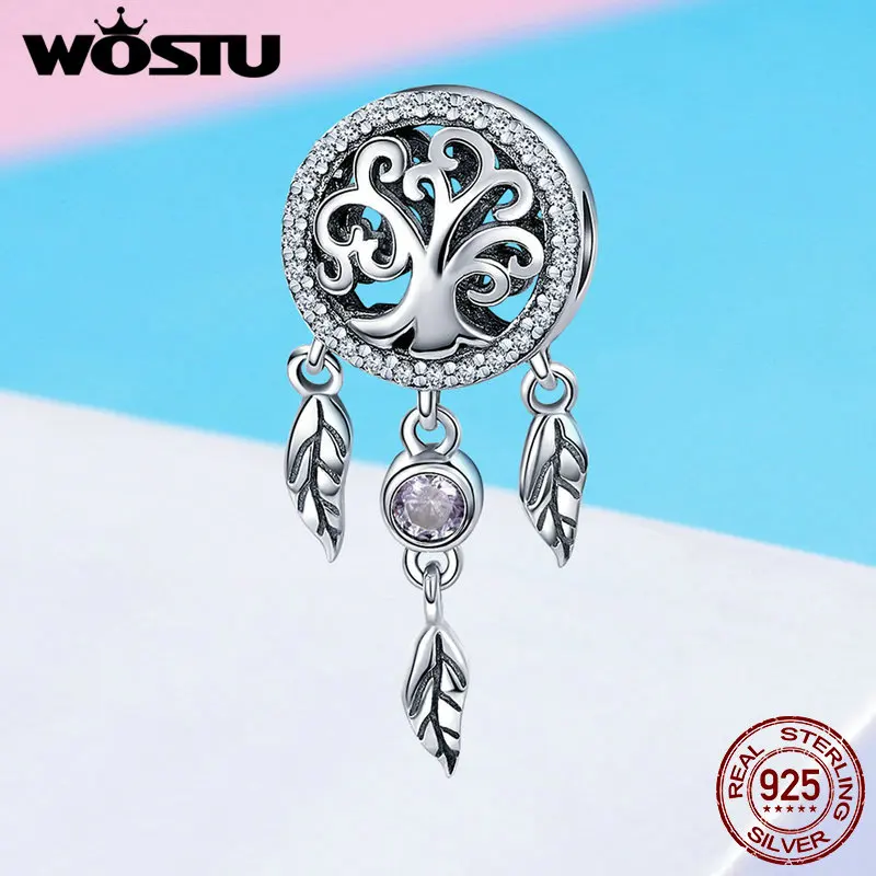 Браслет WOSTU CQC723, из чистого серебра 925 пробы, Ловца снов и подвеска, "Древо жизни", подходит к оригиналу