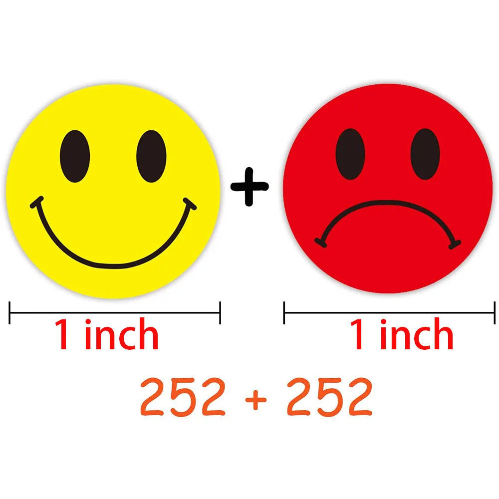 Наклейки с желтым смайликом и красным грустным смайликом, наклейки для учителя, 1 дюйм, круглые точки, 500 этикеток в рулоне