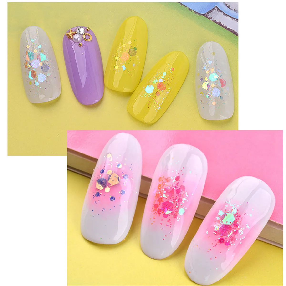 Единорог Аврора эффект порошок дизайн ногтей Блеск AB Русалка алмазные хлопья 3D пиксель ногтей блестки порошок фейерверк эффект смешанный размер