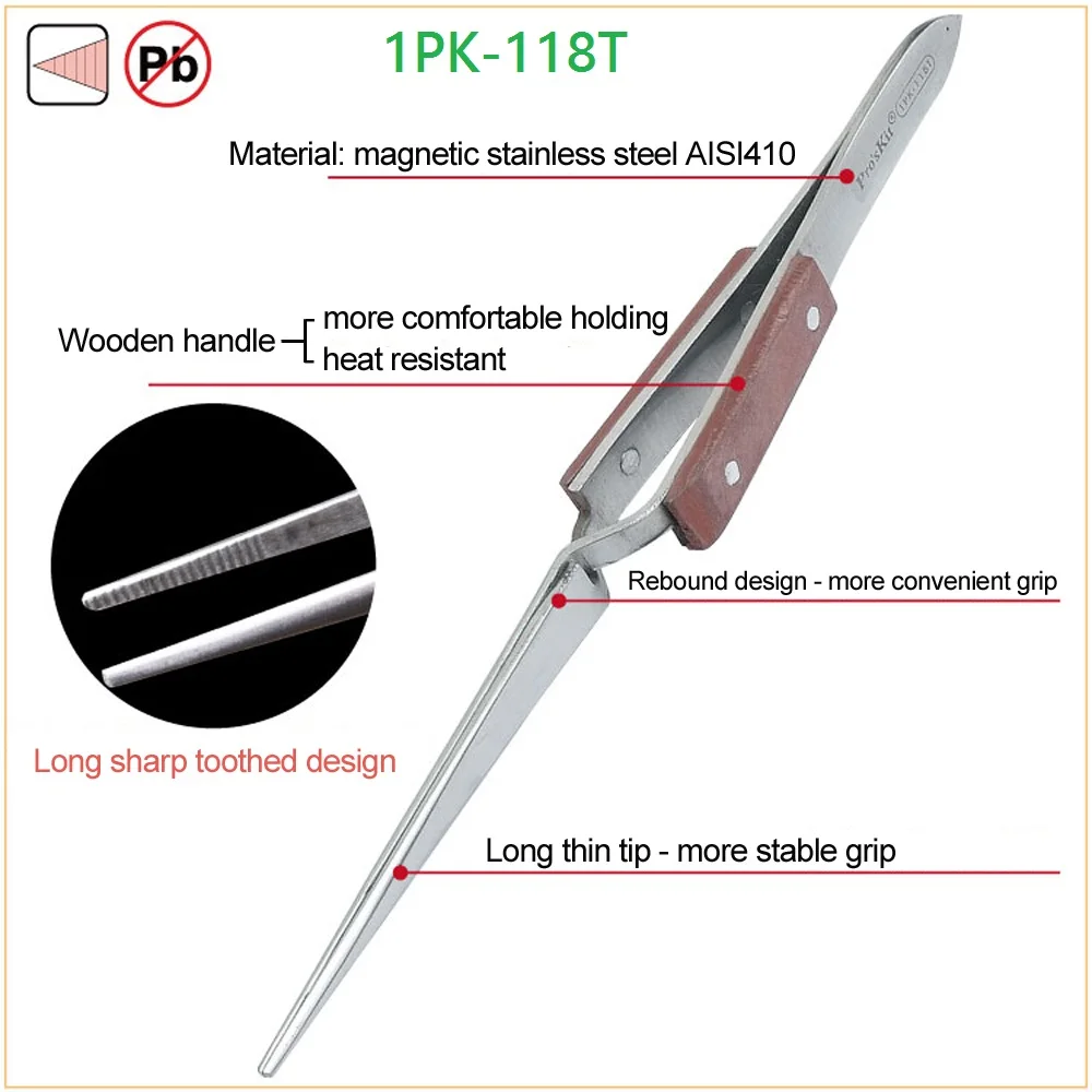 Пинцет Pro'sKit Reverse Action, магнитный инструмент для ремонта с самозахватом ручки из волокна