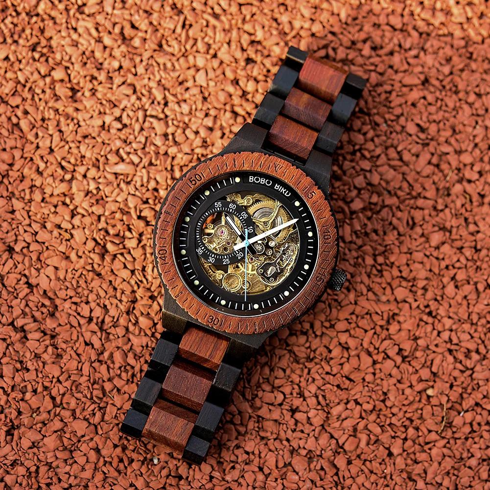 Деревянные Механические часы BOBO BIRD, мужские Роскошные автоматич...