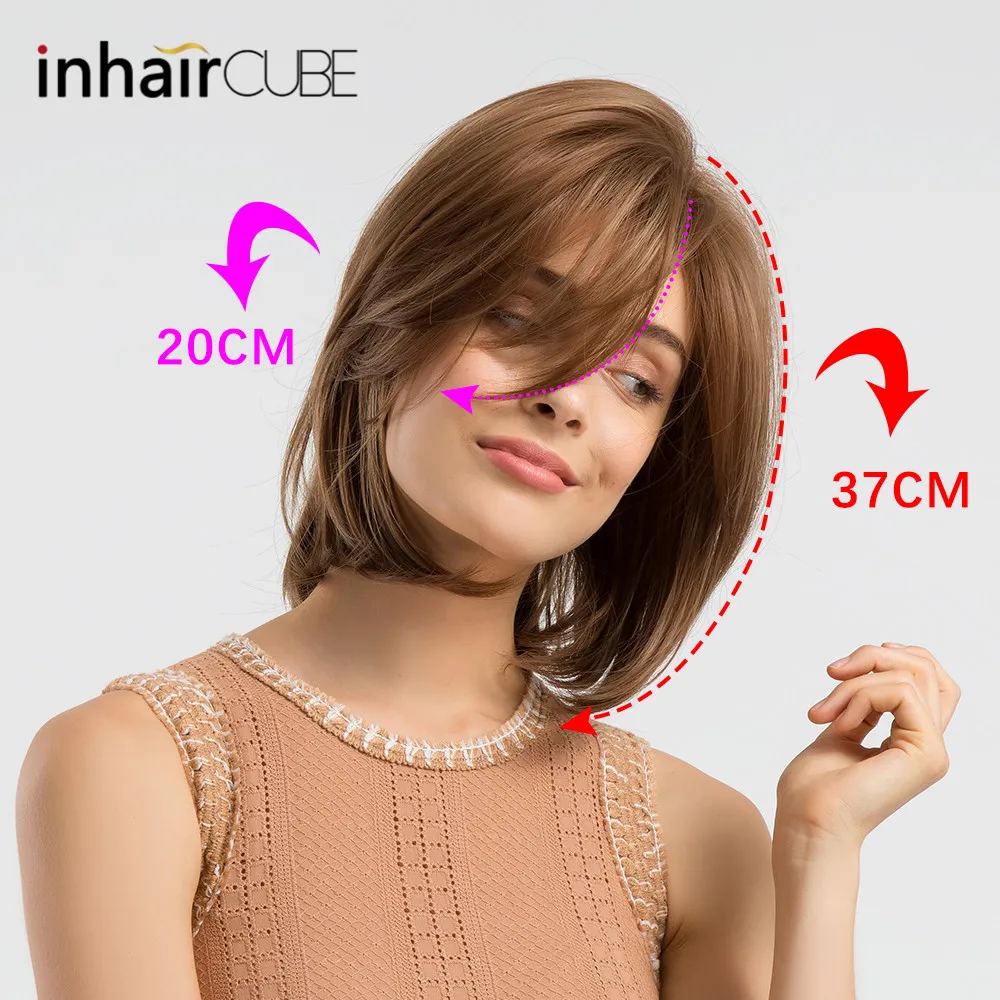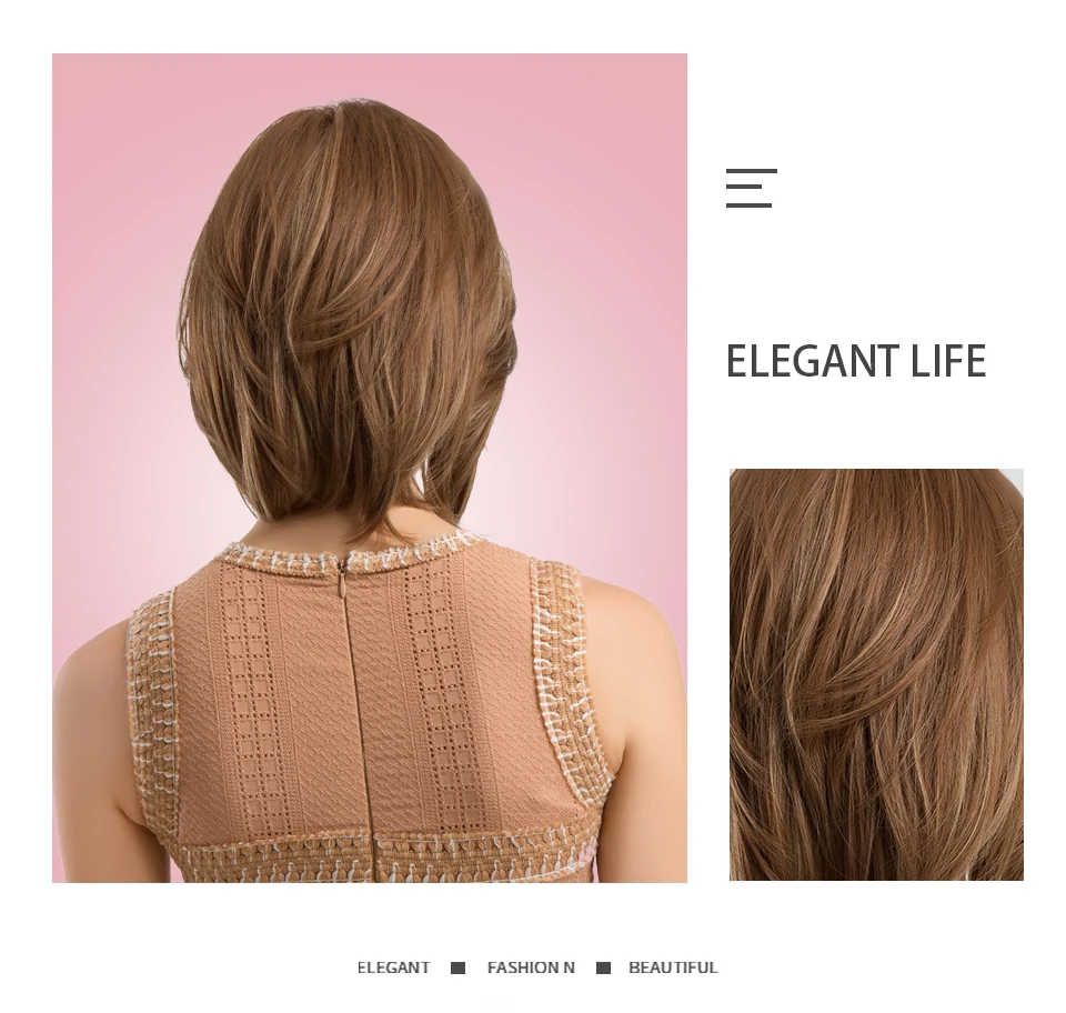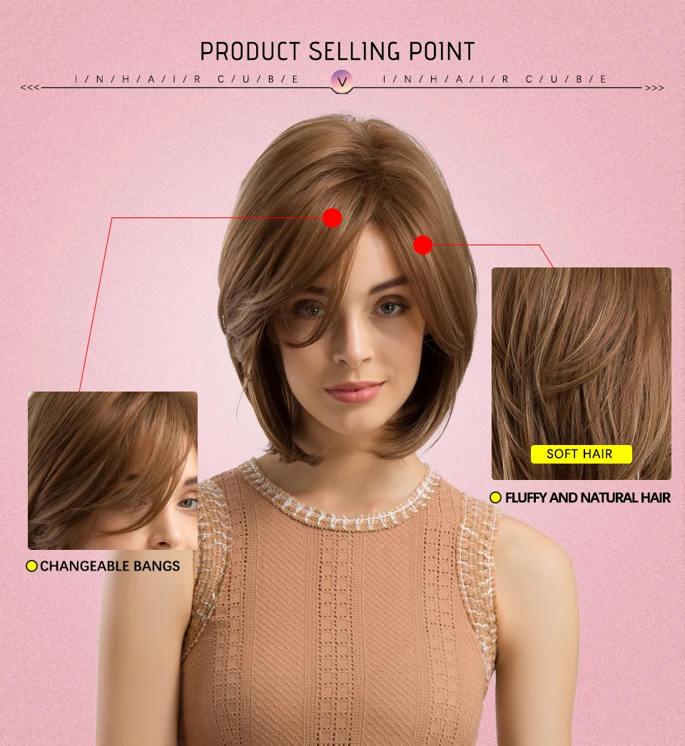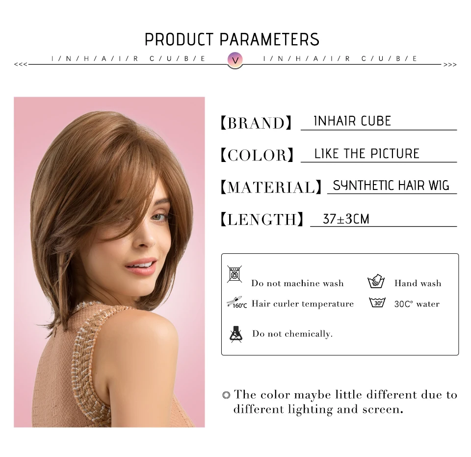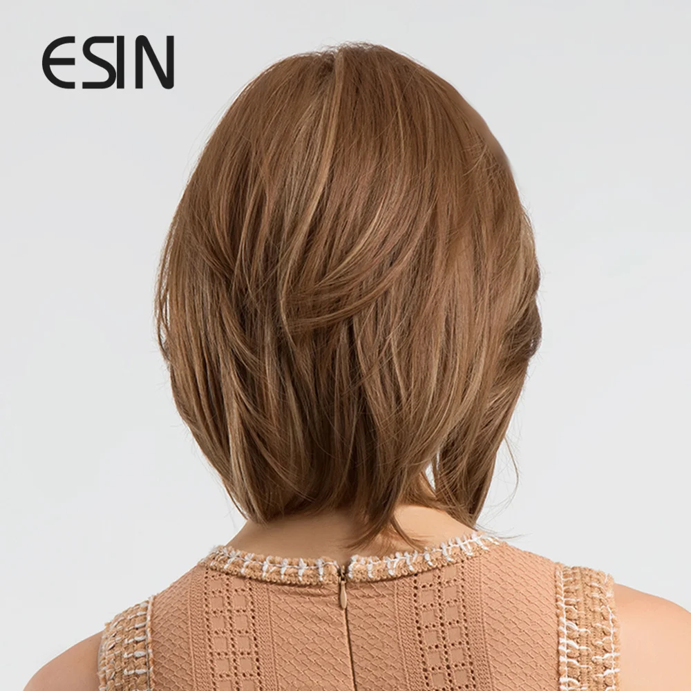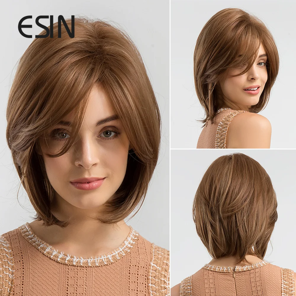ESIN, парики средней длины, коричневые прямые для женщин, синтетические волосы, парики с челкой, термостойкие, для вечерние, повседневные, натуральные