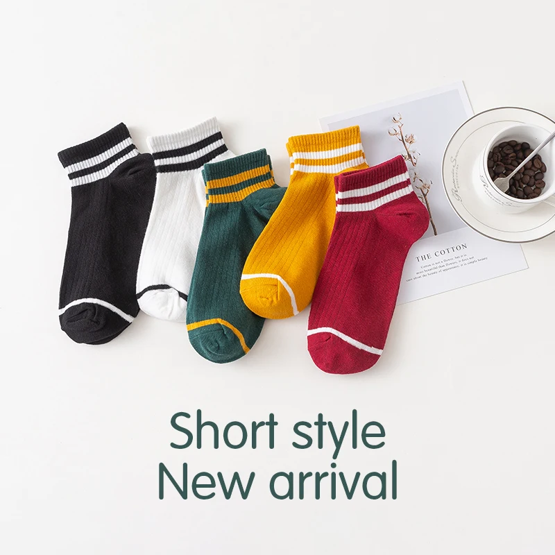 Носки женские хлопковые в полоску, удобные короткие модные смешные, карамельные цвета, в стиле Харадзюку, для девушек