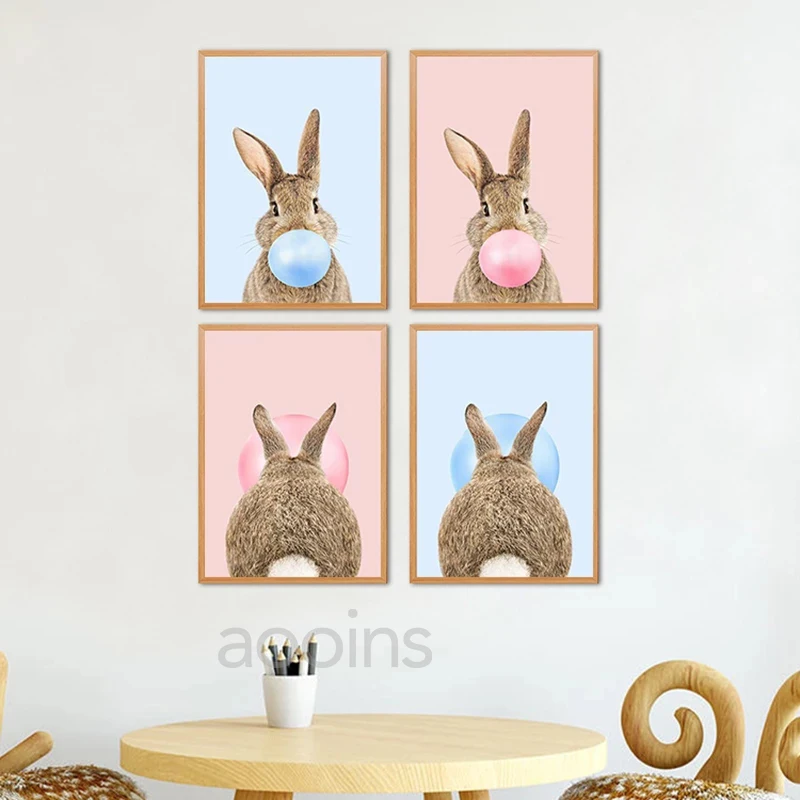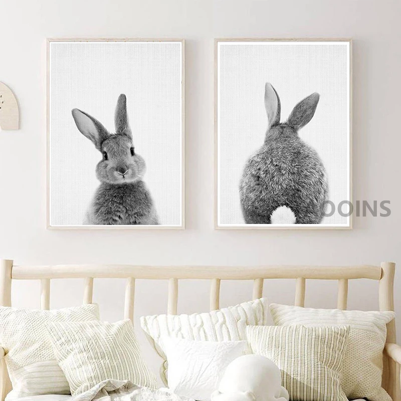 Картина на холсте с кроличьим хвостом, настенный художественный плакат с животными, скандинавский лесной рисунок для детей, девочек, детская комната, домашний декор