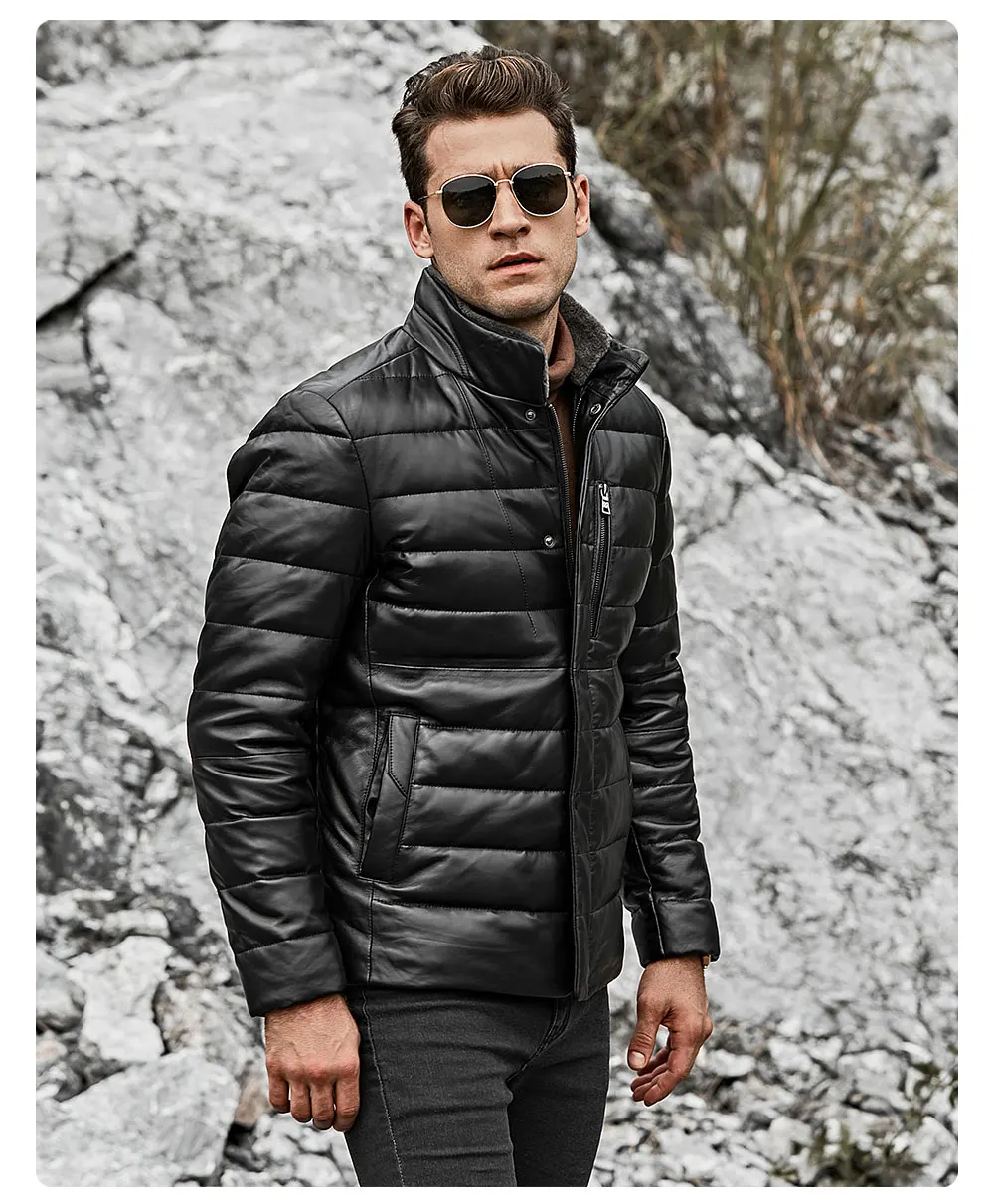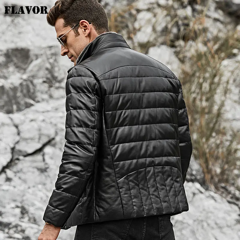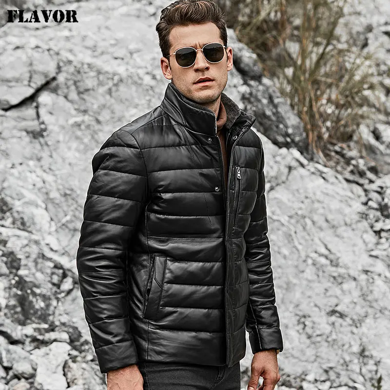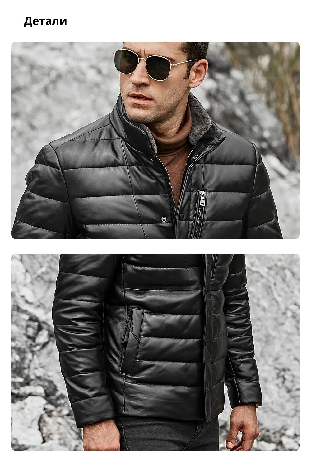 Мужское пальто из натуральной кожи FLAVOR, теплая куртка из натурал...