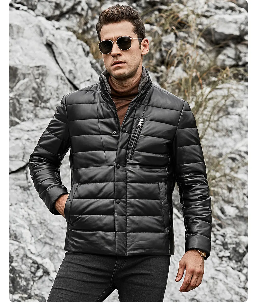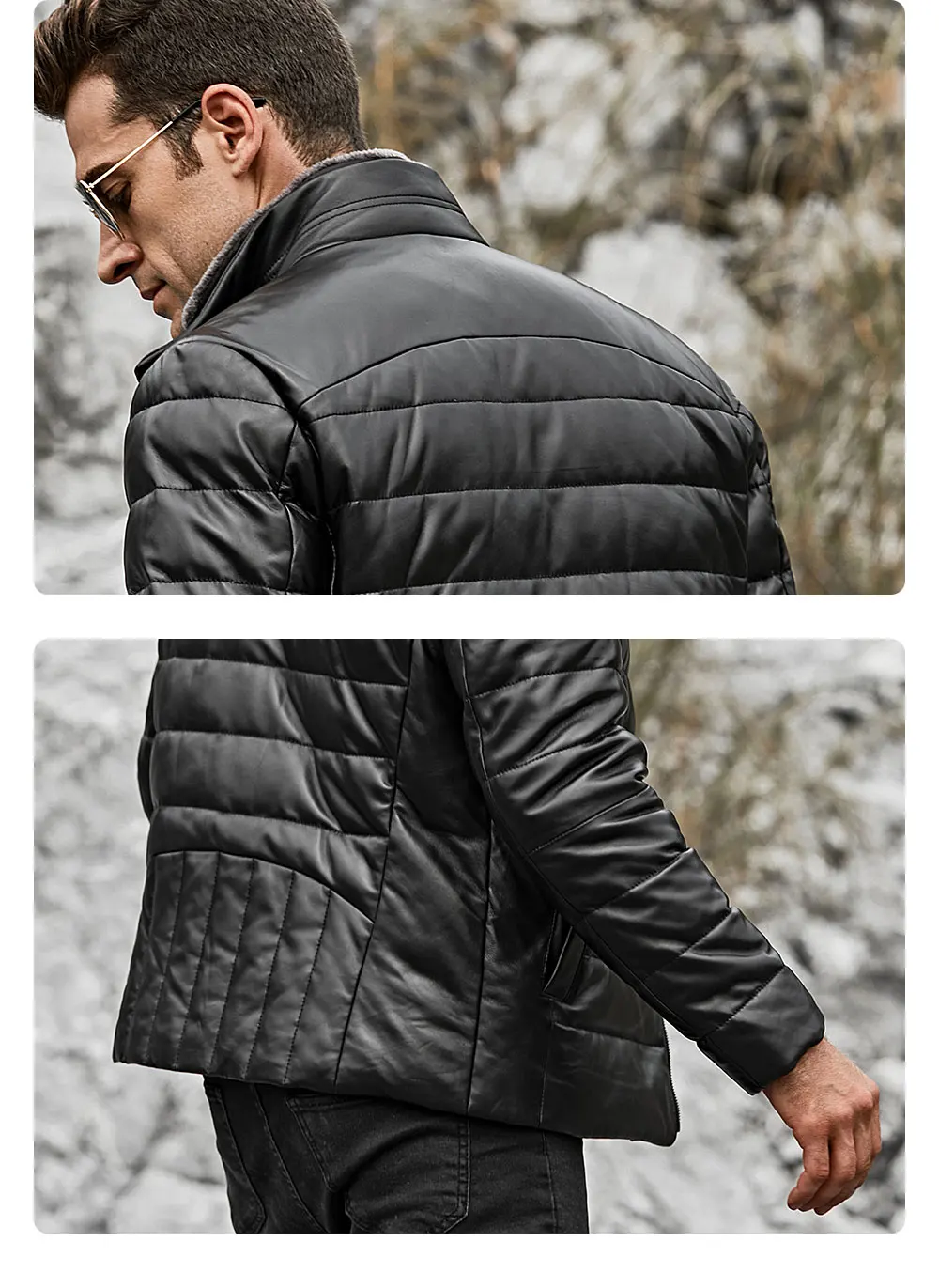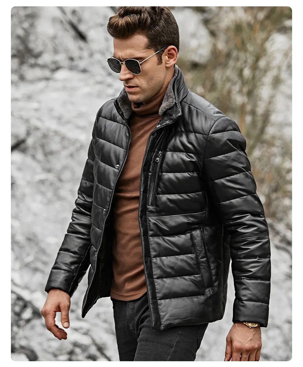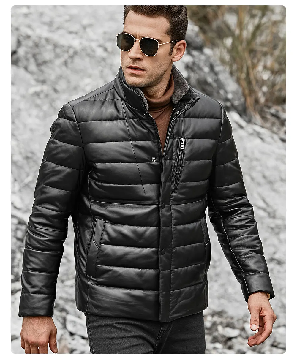 Мужское пальто из натуральной кожи FLAVOR, теплая куртка из натурал...