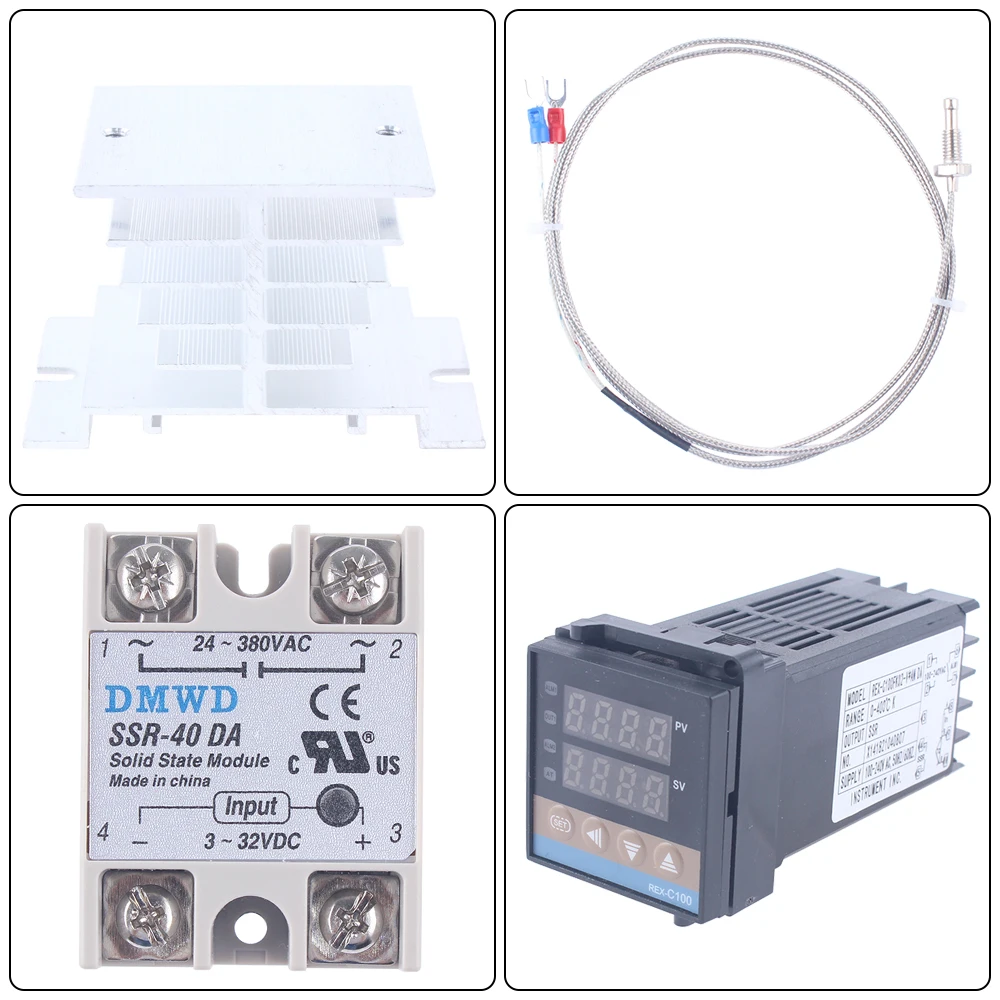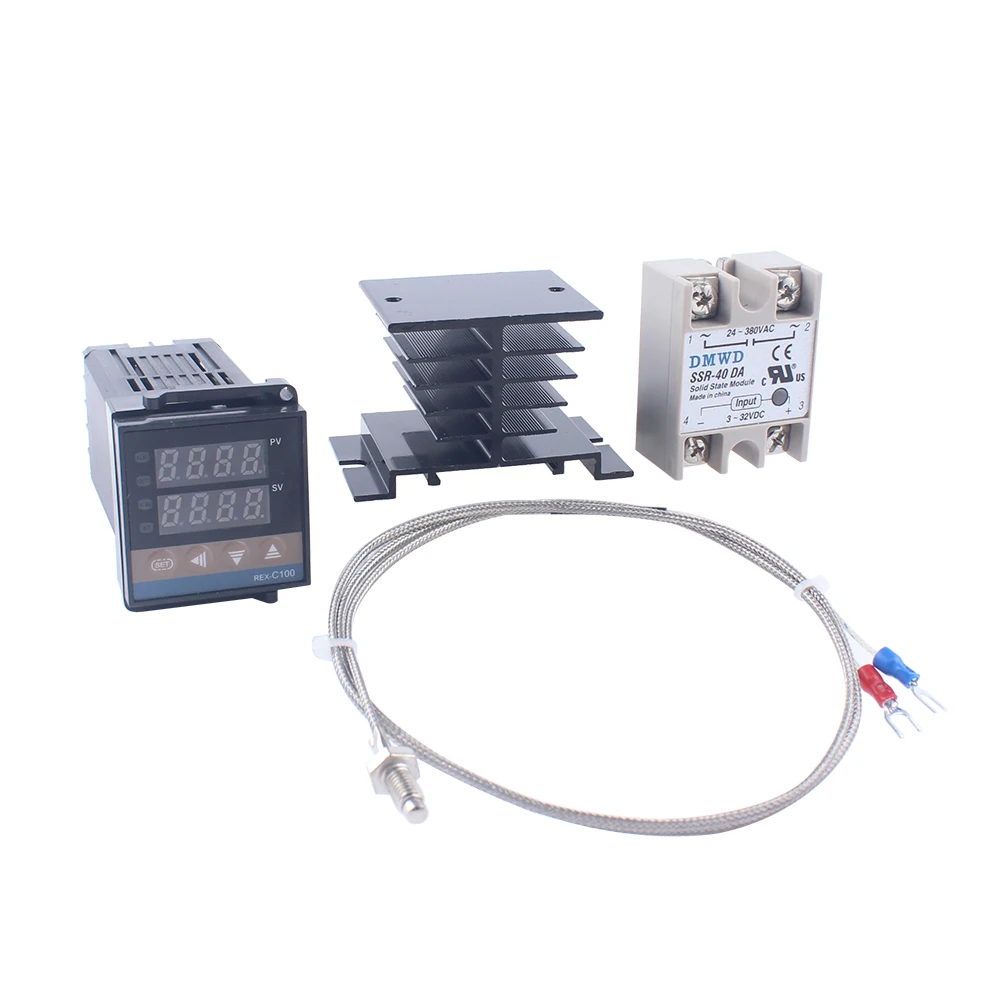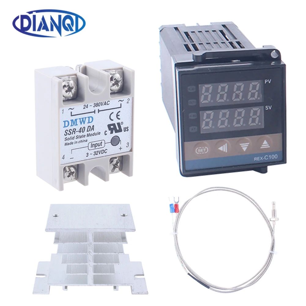 REX-C100 Цифровой ПИД-регулятор температуры, термостат SSRрелейный выход K, датчик термопары RexC-100 SSR-40DA, радиатор