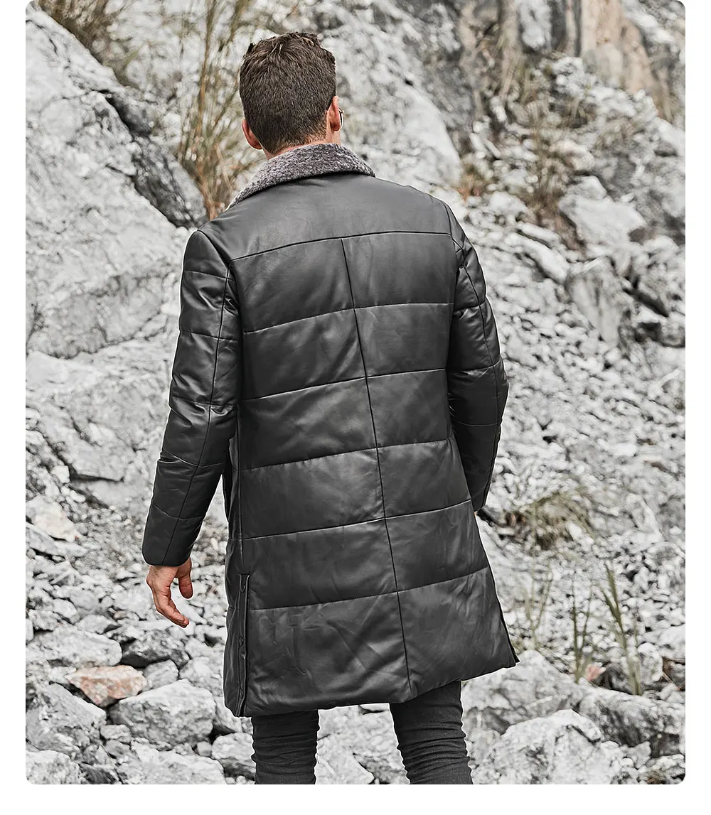Мужской пуховик из кожи ягненка FLAVOR, теплый пуховик на белом ути...