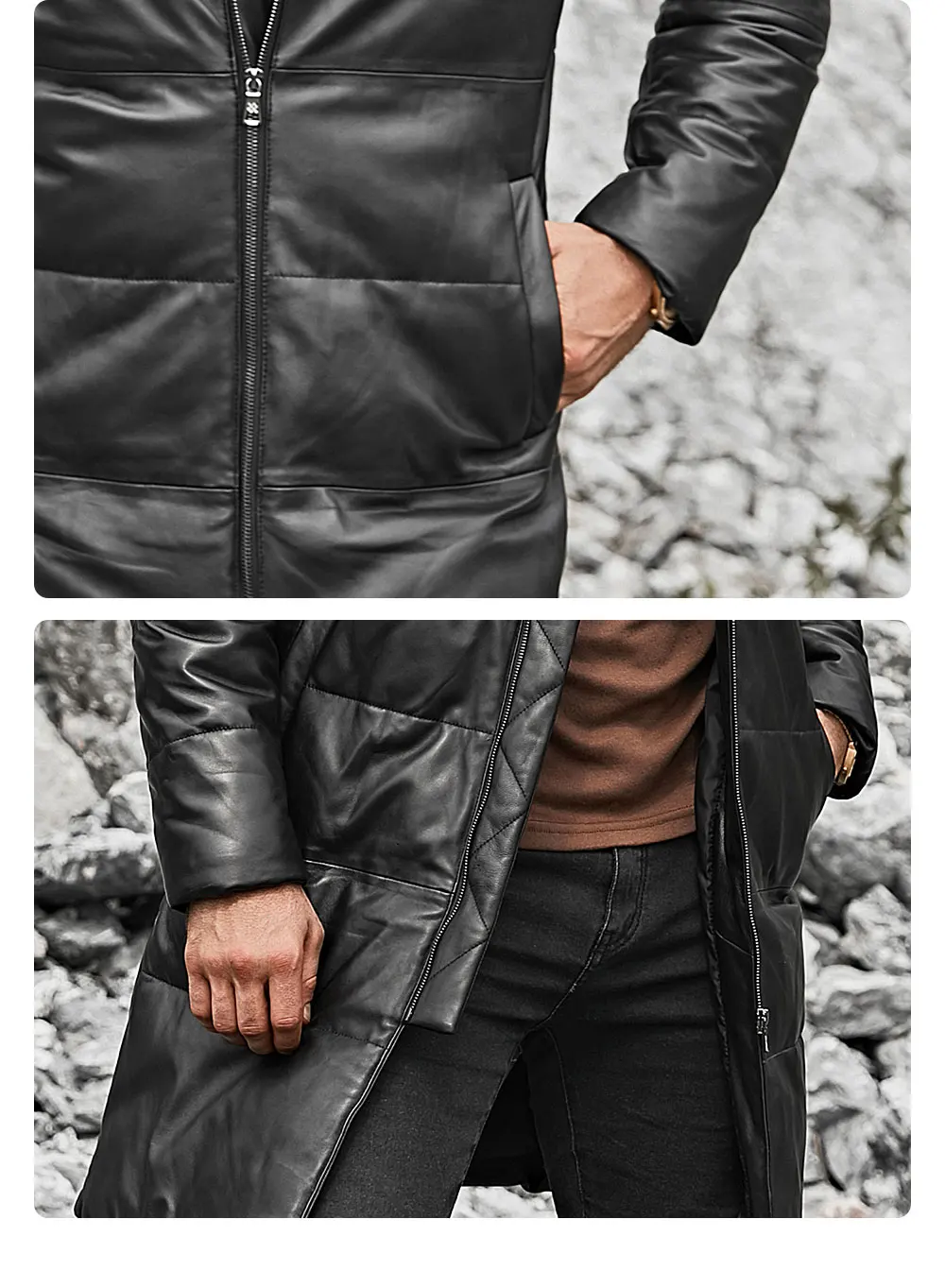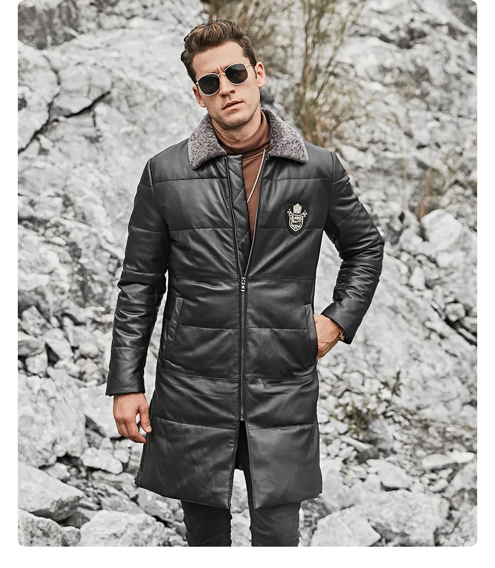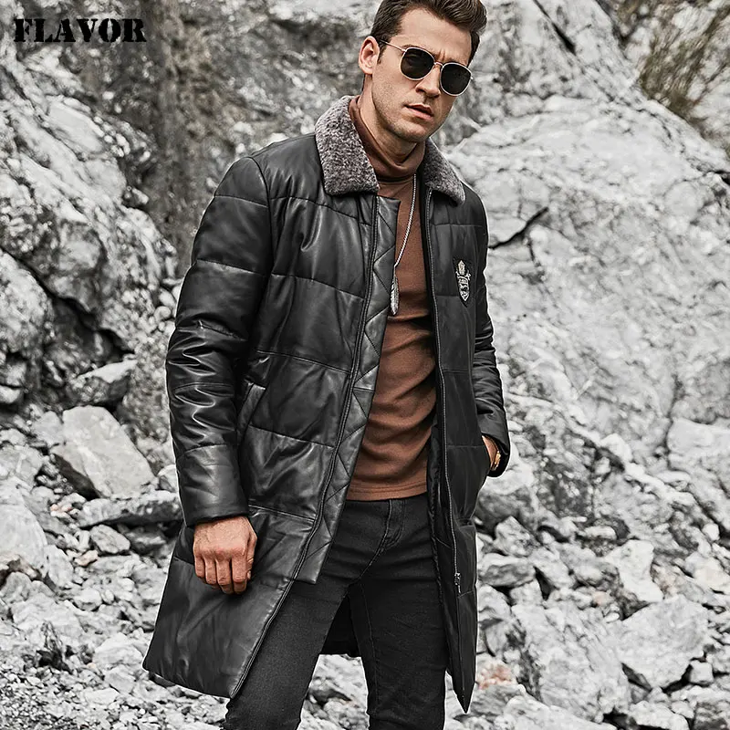 Kожаная куртка мужская на утином пуху FLAVOR, теплый жакет из шкуры...