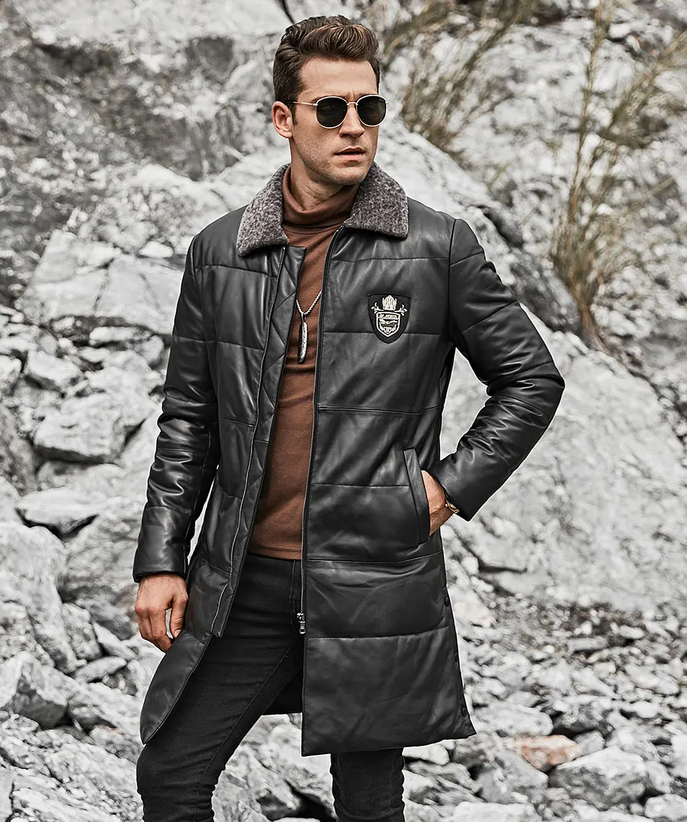 Kожаная куртка мужская пальто на белом утином пуху FLAVOR, из натур...