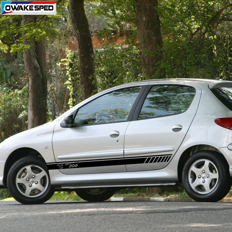 Наклейки на дверь и боковую юбку автомобиля, декор кузова автомобиля, виниловые наклейки, аксессуары для гоночных спортивных полос, аксессуары для Peugeot-208 206 207 3-5 дверей
