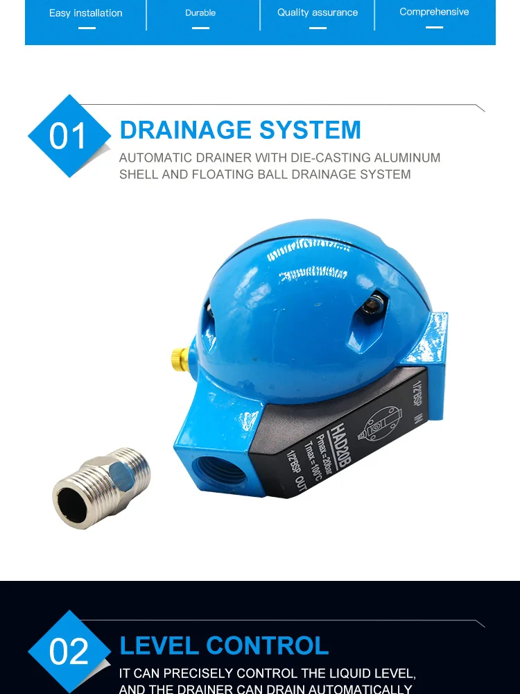 Пневматический винтовой воздушный компрессор HAD20B сферического круглого шарового типа, плавающий водяной диспенсер, насос, дренажный клапан для резервуара газа, 1 шт.