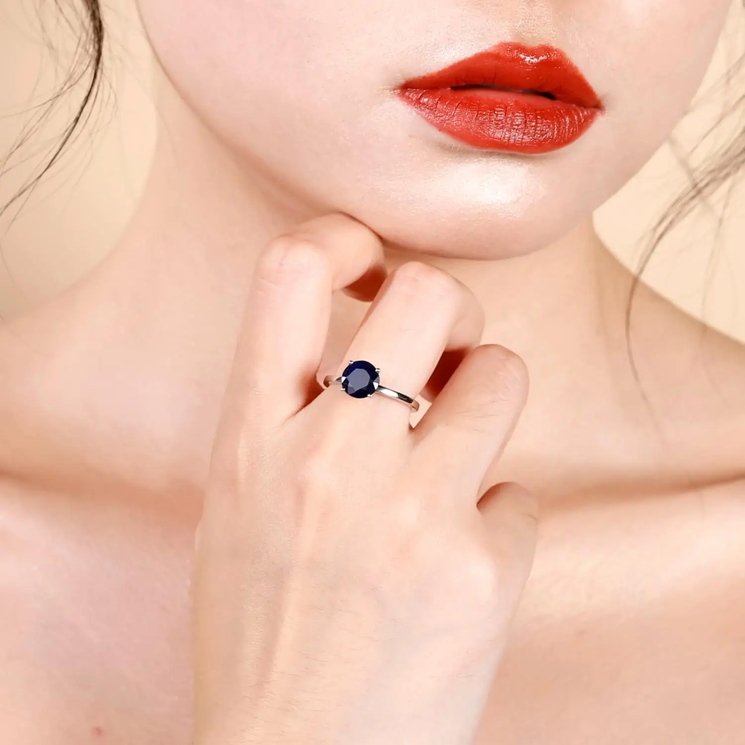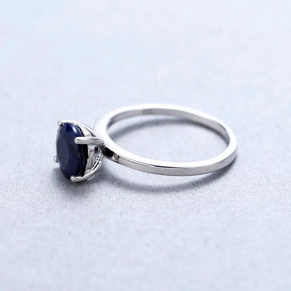 Женские обручальные кольца с драгоценным камнем, из серебра 925 пробы с голубым сапфиром 2,57 карата