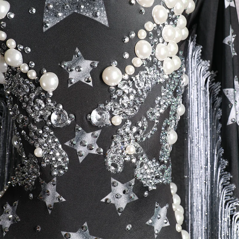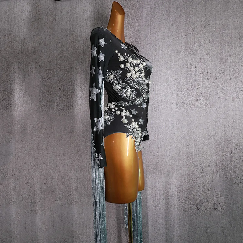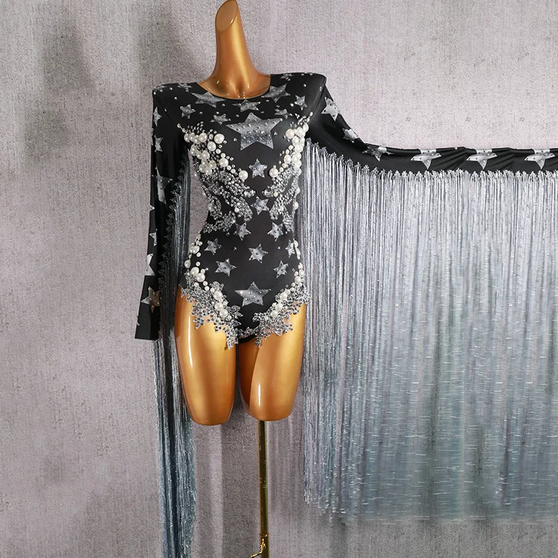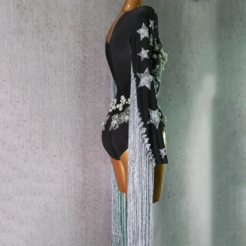 Женский костюм Джаз с бахромой и кристаллами, сексуальное боди, черный танцевальный комбинезон для ночного клуба, вечевечерние НКИ, оленя, выпускного вечера DJ210