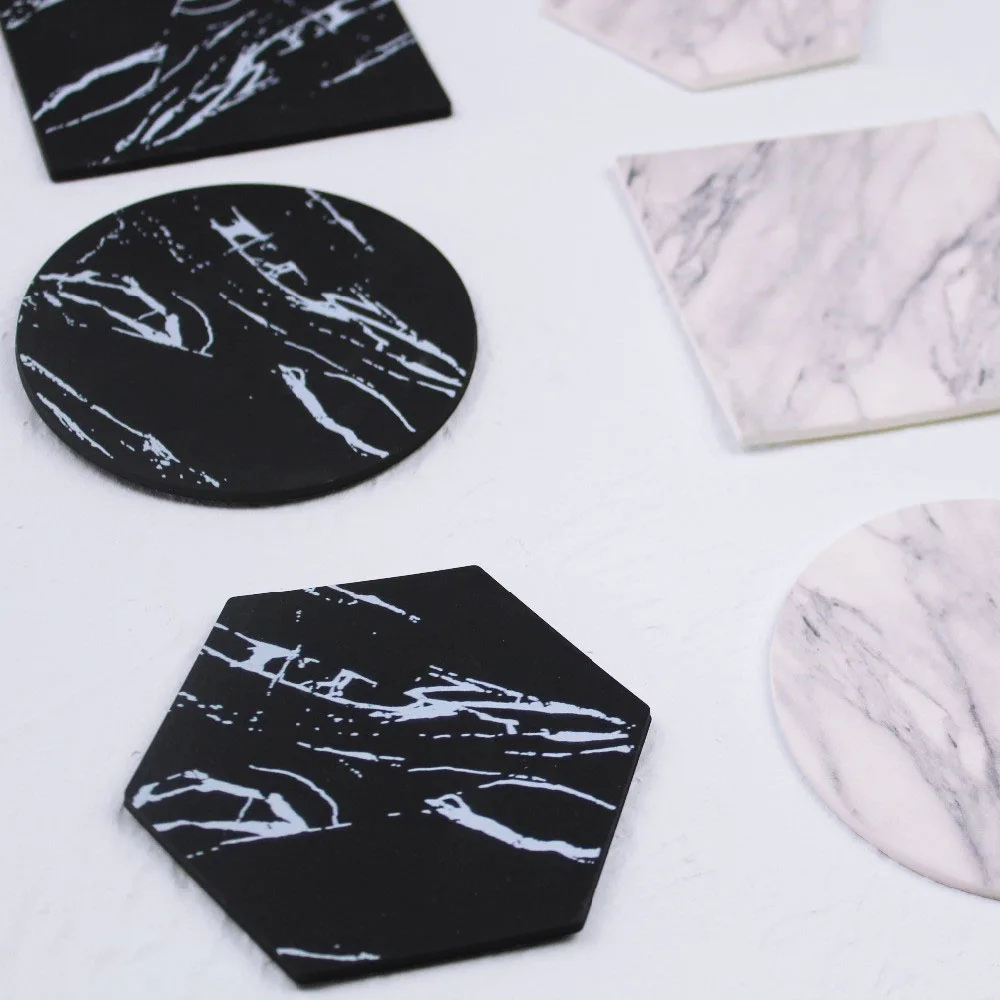 Силиконовые подставки под чашку, с имитацией мрамора, черные, белые, фламинго, водонепроницаемые, Нескользящие, для рабочего стола, украшение для стола