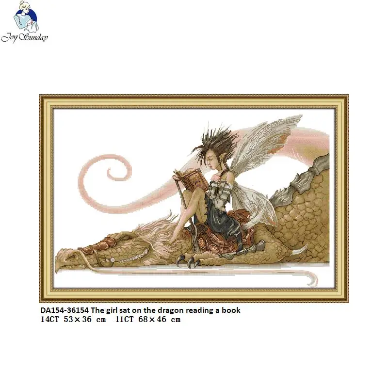 Joy Sunday девушка сидела на драконе, читая книгу, счетный крест, сделай сам 14CT и 11CT для вышивки домашнего декора