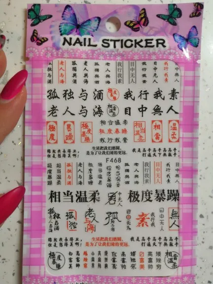 1 лист, модные уникальные китайские идиомы, наклейки для ногтей, наклейки для самостоятельного изготовления, F465-470 #