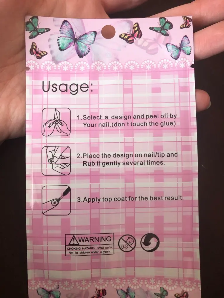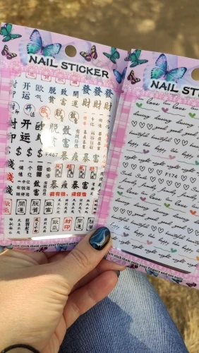 Отличные наклейки на ногти, хорошо снимаются с подложки и крепко приклеиваются к ногтю (надо только приноровиться это делать). Единственное- надо открывать очень аккуратно, а то мы оторвали вместе с наклейками, так как не заметили, что наклейки сдвинулись. Доставка быстрая, с продавцом не общались. Покупкой довольны, будем заказывать ещё :) сделали маникюр с этими наклейками, очень интересно получилось