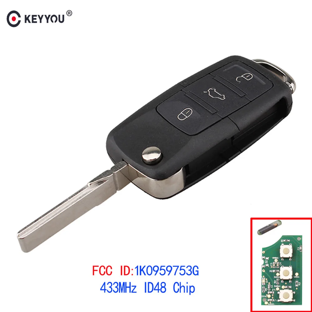 Дистанционный ключ KEYYOU с 3 кнопками, 434 МГц, ID48 1K0959753G для VOLKSWAGEN VW PASSAT B5 B6 Skoda Tiguan Touran GOLF JETTA POLO