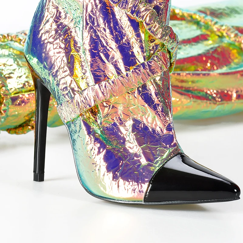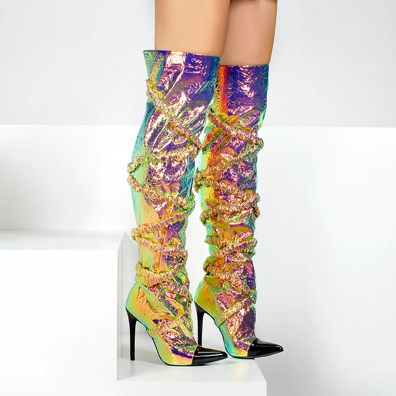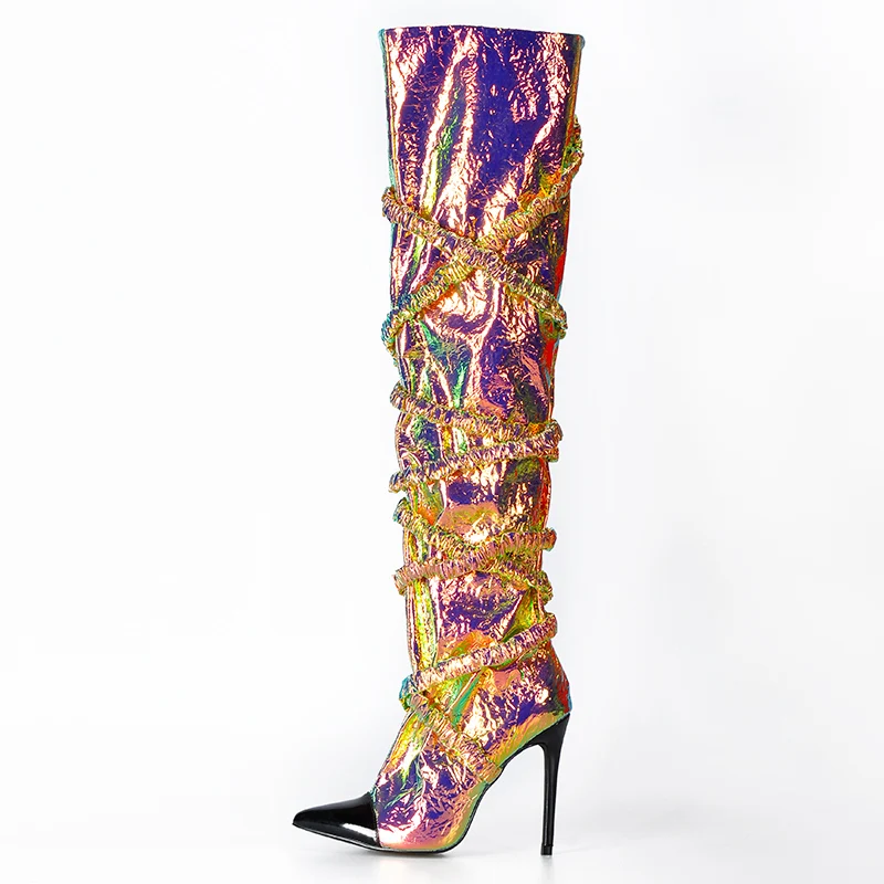 Женские ботфорты с розовыми ладонями, осенне-зимние сапоги на высоком каблуке, с острым носком, без застежки